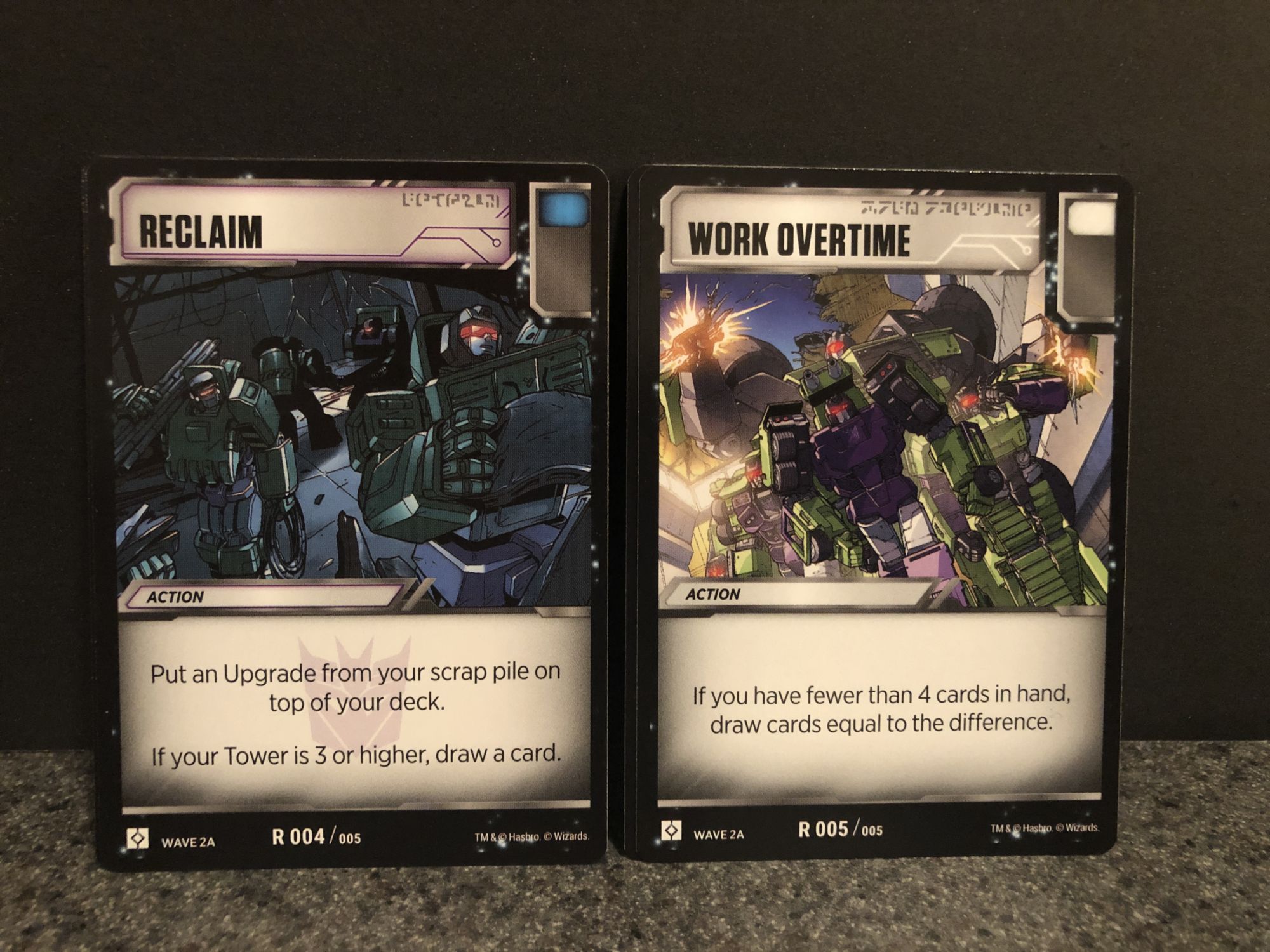 Of course, character specific battle cards and the Constructicon Enigma card are included so you can actually use your new Devestator in Transformers TCG battle. Reclaim and Heavy Landing look like good cards, while Work Overtime also seems like a good card to place in your deck.