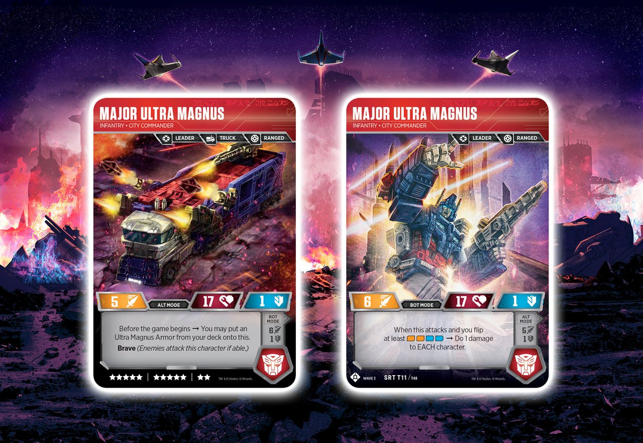 New characters will also be joining in on the fun this time, like Soundwave (finally!), Major Shockwave, and Major Ultra Magnus. 48 character cards and 64 Battle cards in all will make up the set to collect, so make room in your binders and deck boxes everyone!