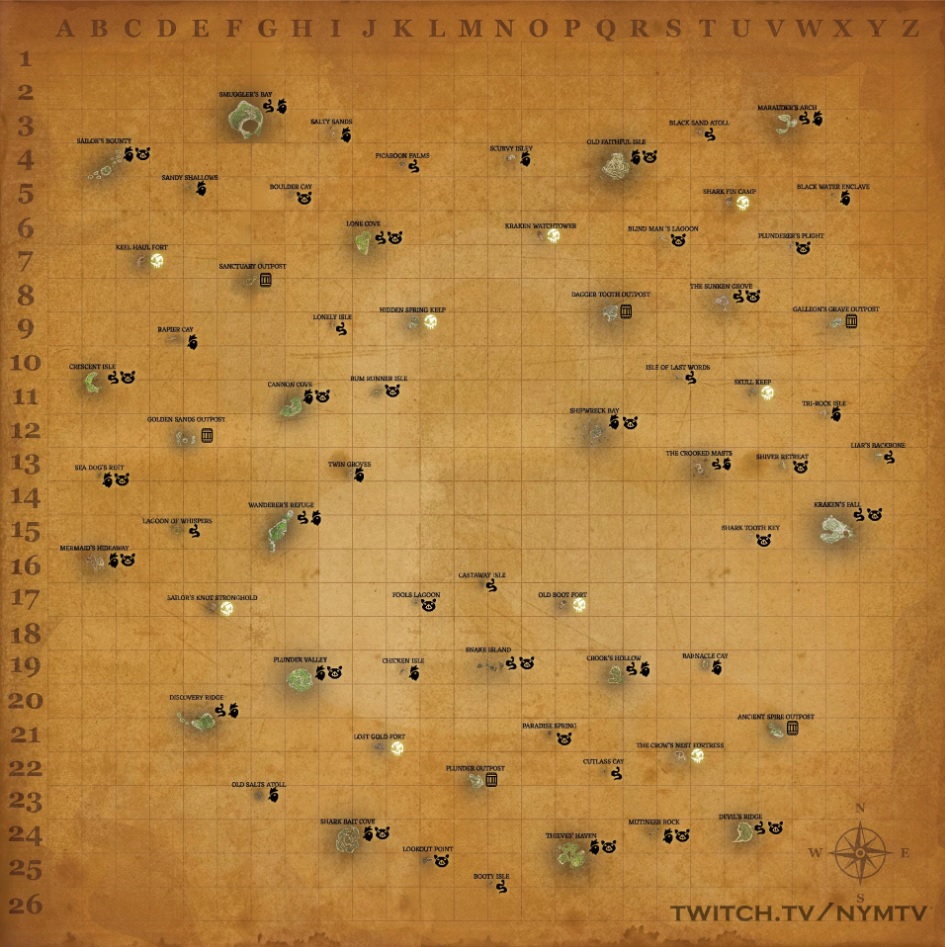 In case you've been playing Sea Of Thieves and haven't been paying attention, the game has a massive board and a lot of different areas you can visit for various items, loot, plundering, battles, and of course death lurking everywhere. So like real pirates, the Twitch community of players have slowly started figuring everything out and are sharing their findings with you and each other. This latest Reddit post from a user named NYMTV shows off the map he recently made of the entire sea, which includes animal spawns, forts, and outposts so you can plunder a little faster for whatever you need.