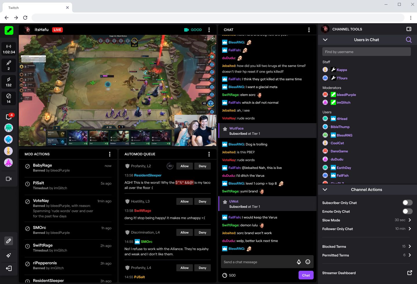 Mod View: We're introducing Mod View a new, customizable channel mode to help Mods do their job more easily. It includes all of the tools Mods use today, and new ones that allow them to quickly take action on messages flagged by AutoMod, see which mods are online, and includes a log of all moderation actions on the channel. We'll begin rolling this out next spring.