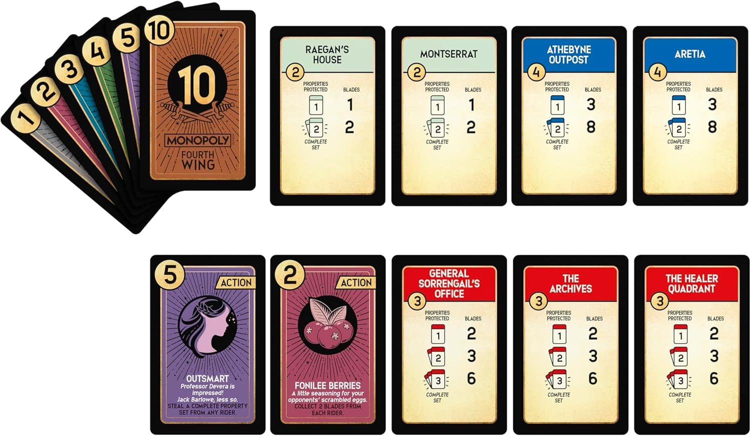 - Choose between a classic Monopoly board game or a fast-paced Monopoly Deal card game with a Fourth Wing twist.