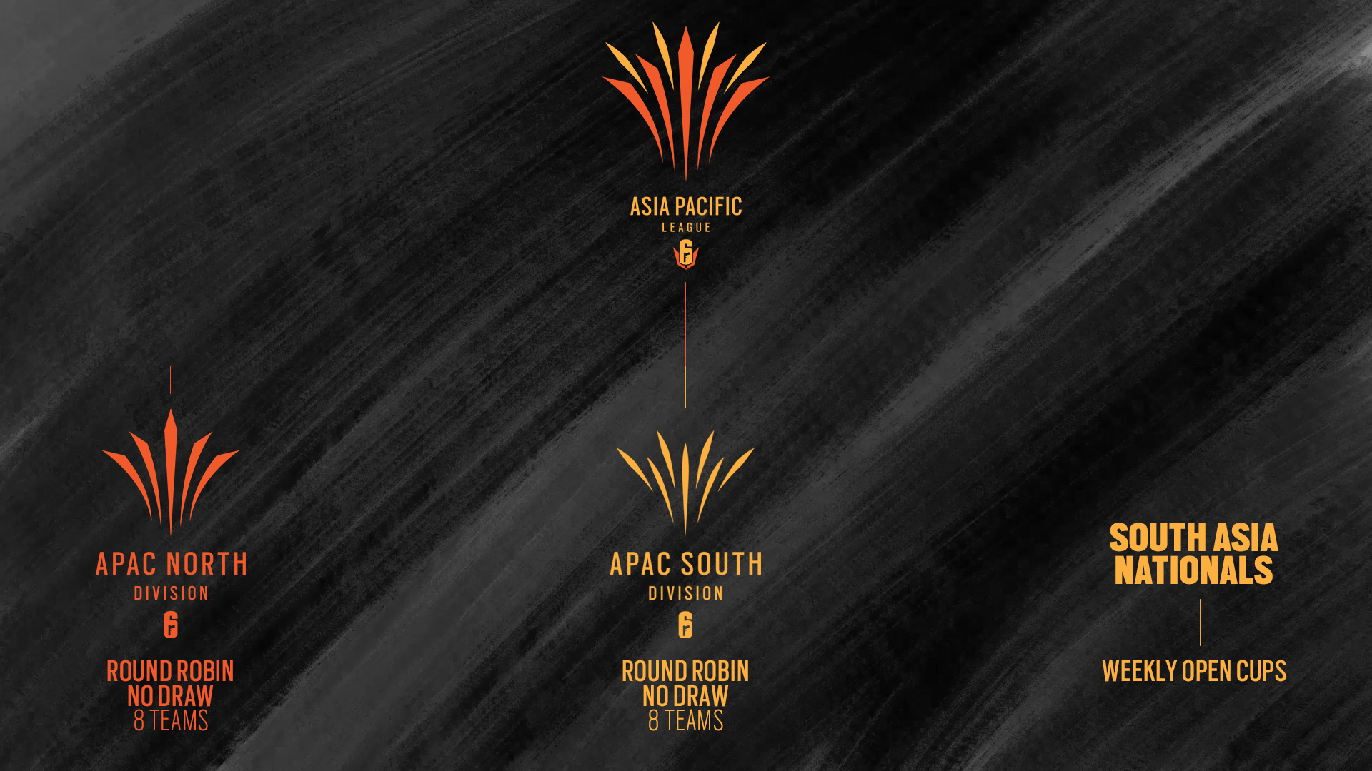 For Season 2021, the Asia-Pacific League will remain divided into two divisions, with the North Division – composed of teams located the northernmost of the region, meaning mostly teams from Japan, South Korea and South East Asia – and the South Division – composed of teams located the southernmost of the region, meaning from South East Asia, Australia and New Zealand. Each division will now gather eight teams and follow the same competitive format: an online round robin with Best-of-One matches. In addition of these two divisions, Ubisoft will continue to organize the South Asia Nationals to offer up-and-coming teams the opportunity to hone their skills and reach the international competitions. During a stage, each division will have one playday per week over seven weeks.