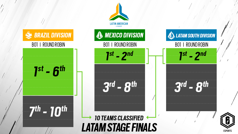 At the end of each stage, the best teams from each division advance to the LATAM League Stage Finals, a tournament that will give the top four teams the chance to qualify for one of the most prestigious Rainbow Six Siege tournaments in the world, the Six Major. Stage 1 of the Brazil Division will kick off on March 20, while Stage 1 of the Latin America South Division will start on March 19 and the Mexico Division on March 21.