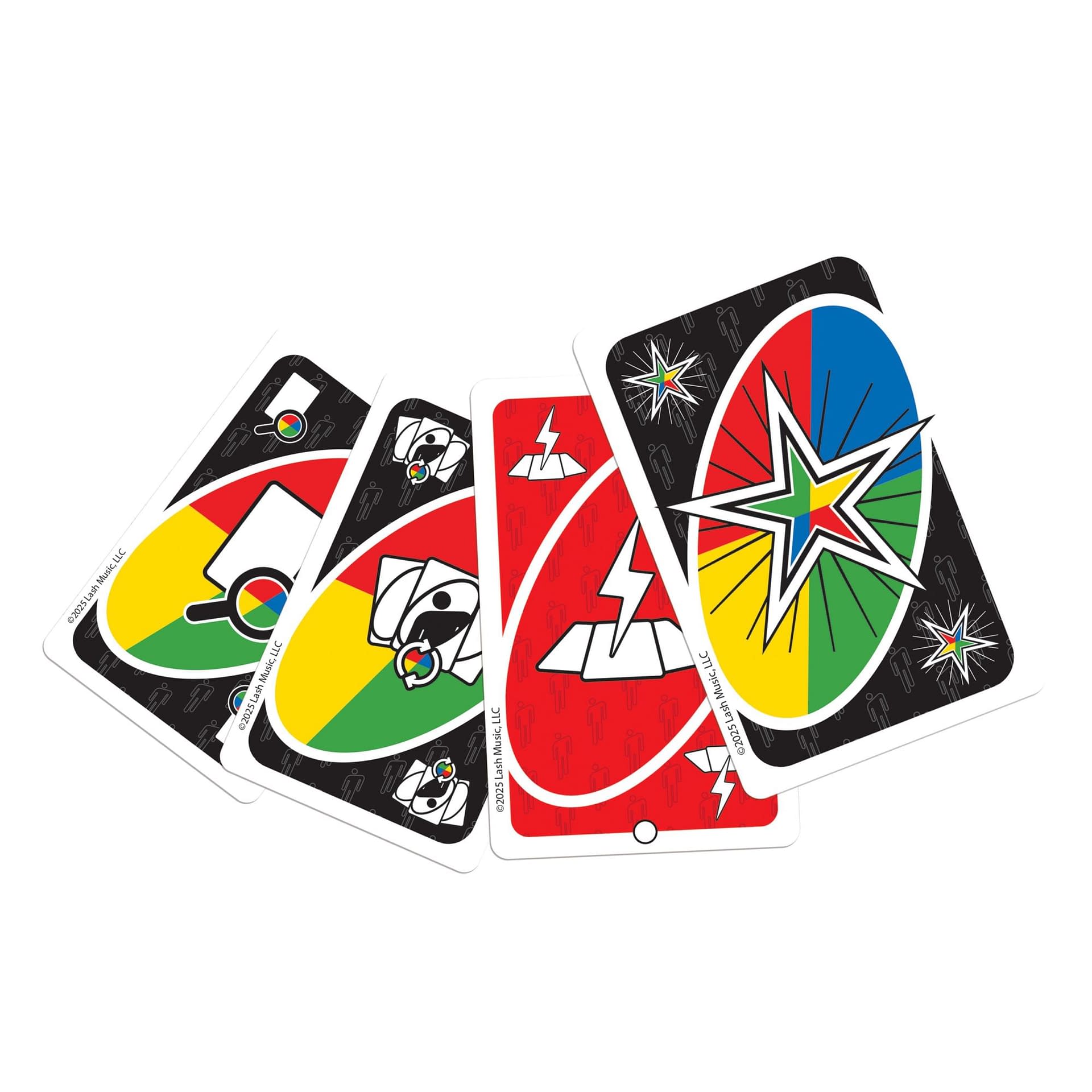 Add the Billie Eilish UNO Add-On Pack cards to a classic UNO deck for an exciting twist on the beloved card game! Each card in this special pack, hand-picked by Billie herself, introduces unique rules that bring chaos, strategy, and unexpected surprises to the table. From passing cards to sneaky extra turns, and even forcing players to reveal their cards for all to see, this pack spices up the gameplay like never before. Perfect as a gift for Billie Eilish fans, UNO enthusiasts, and card game lovers aged 7 and up, this add-on pack is sure to hit all the right notes! Colors and decorations may vary.