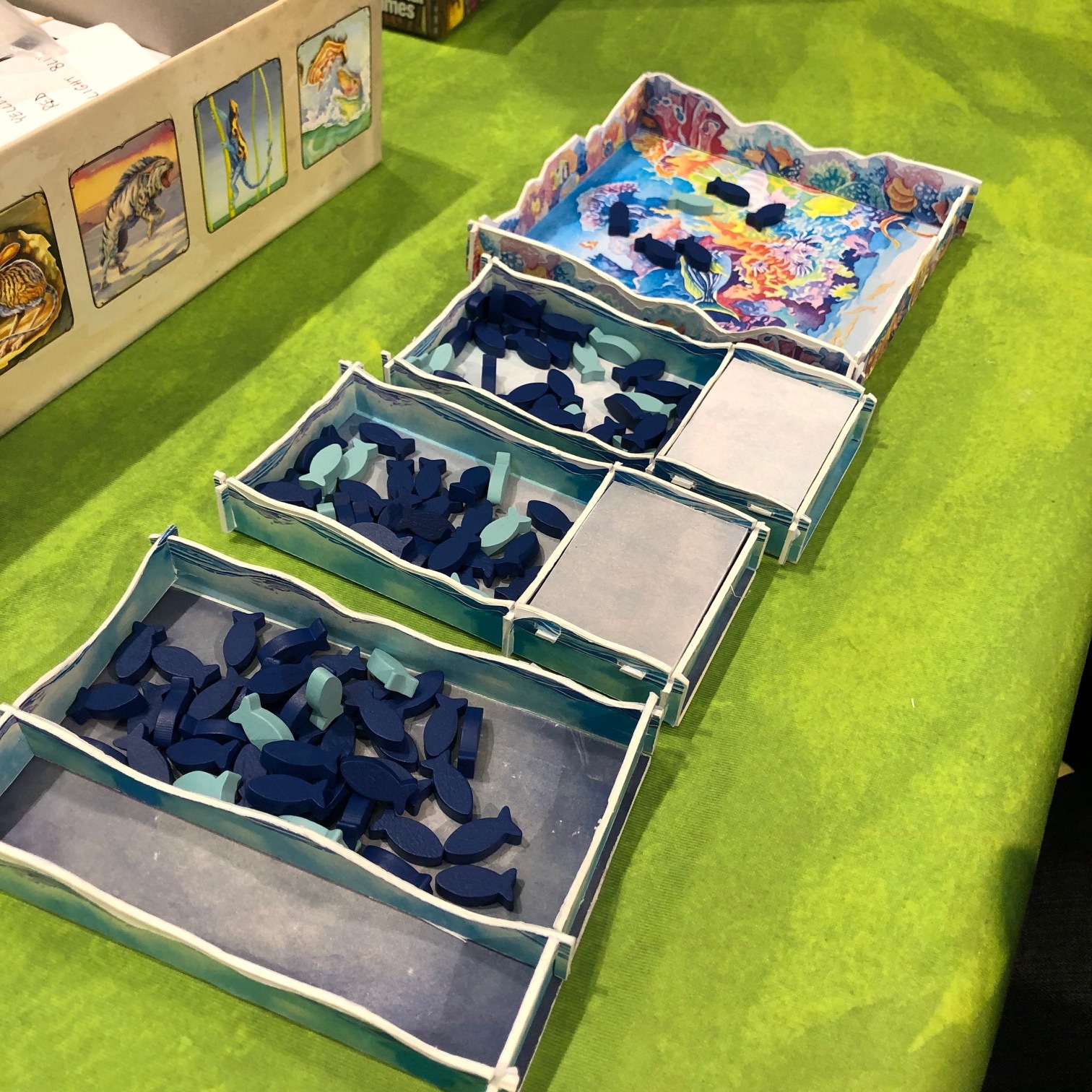 During our time at PAX East this year, we paid a visit to our friends over at North Star Games to see what new games they had on the way. These guys are always cool and happy to see us, so the demos we get are very hands-on and in-depth for board games, even though a lot of their games are easy to learn and fun to play. The first we got to check out was Oceans, which if you've ever played Evolution (another game they make) then you already know the basics of Oceans. It's just set in the sea with a lot more dangerous creatures and different ways to evolve your deep dark creatures than the first. Some of the things you can do in this game are insane and will make you freak out as to what you can create.