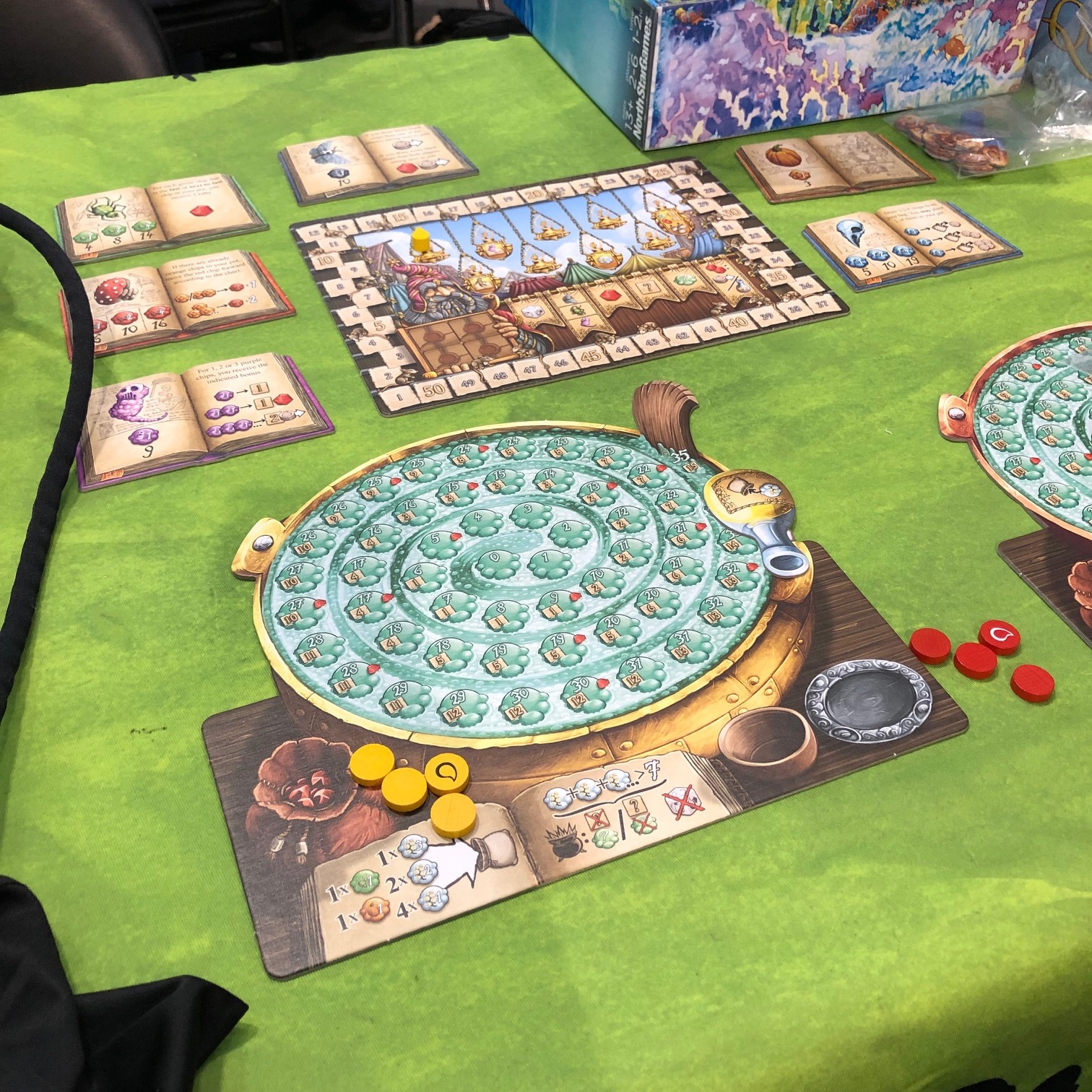 The other game we checked out was The Quacks in Quedlinburg, which was described to me as having Harry Potter battles with magic. This is a 2-4 player game where you build up your cauldron of magic to cast spells and purchase other spells against players in the game to essentially become the best wizard of the bunch. We only played a couple rounds of it but it looks intriguing and can be a lot of fun. Especially if you are a Potter fan and would like to have a game that is essentially you casting spells on other wizards in battle.