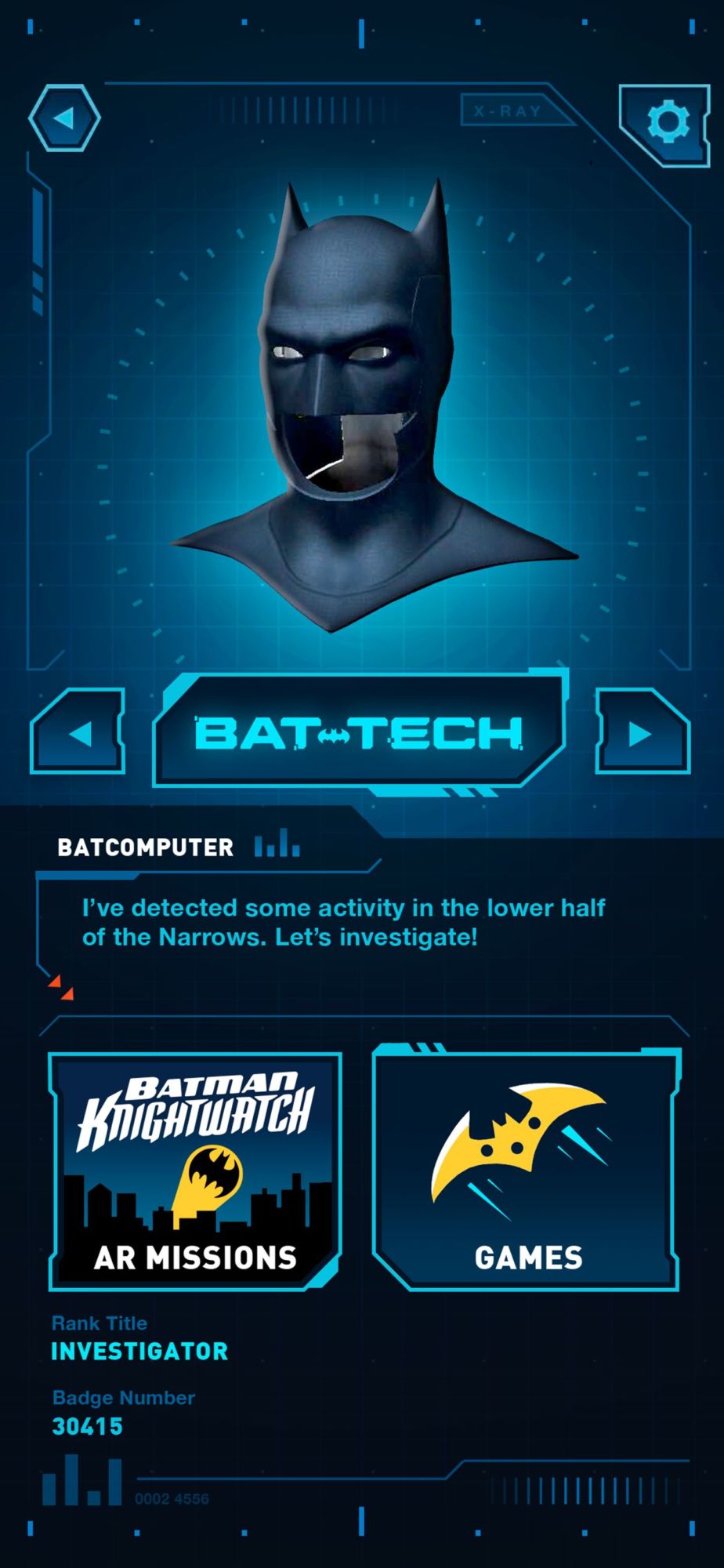 - Augmented reality (AR) missions: Through the new app's AR features, kids become a member of Batman's new Knightwatch team and immerse themselves in original Batman crime-fighting missions. The amazing AR provides a realistic 3D experience that draws upon engineering and design concepts to make Batman's Bat-Tech come to life.