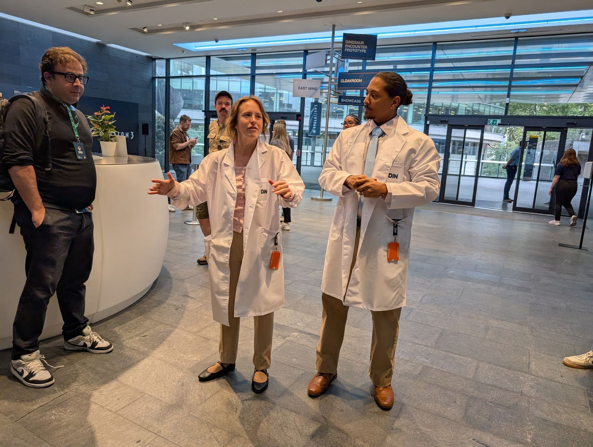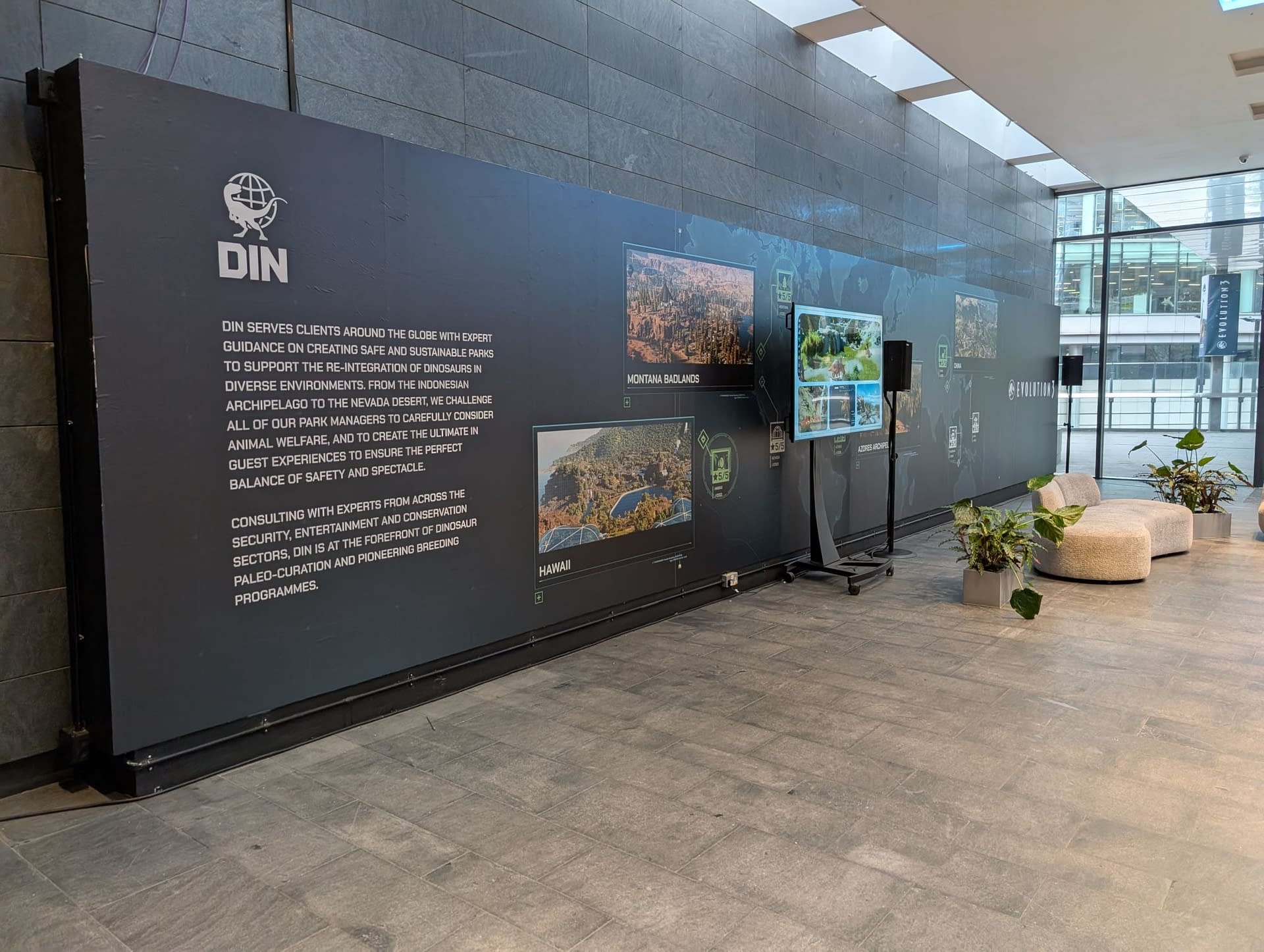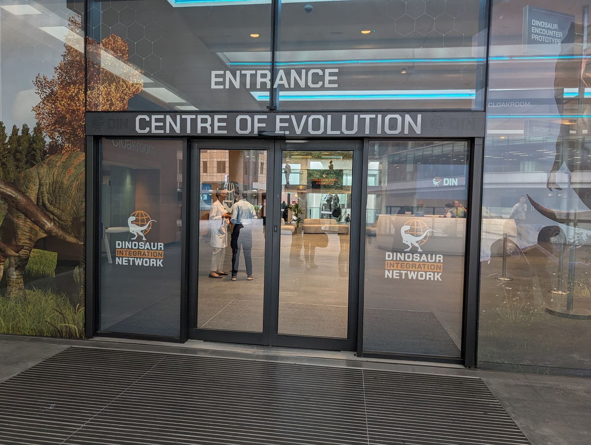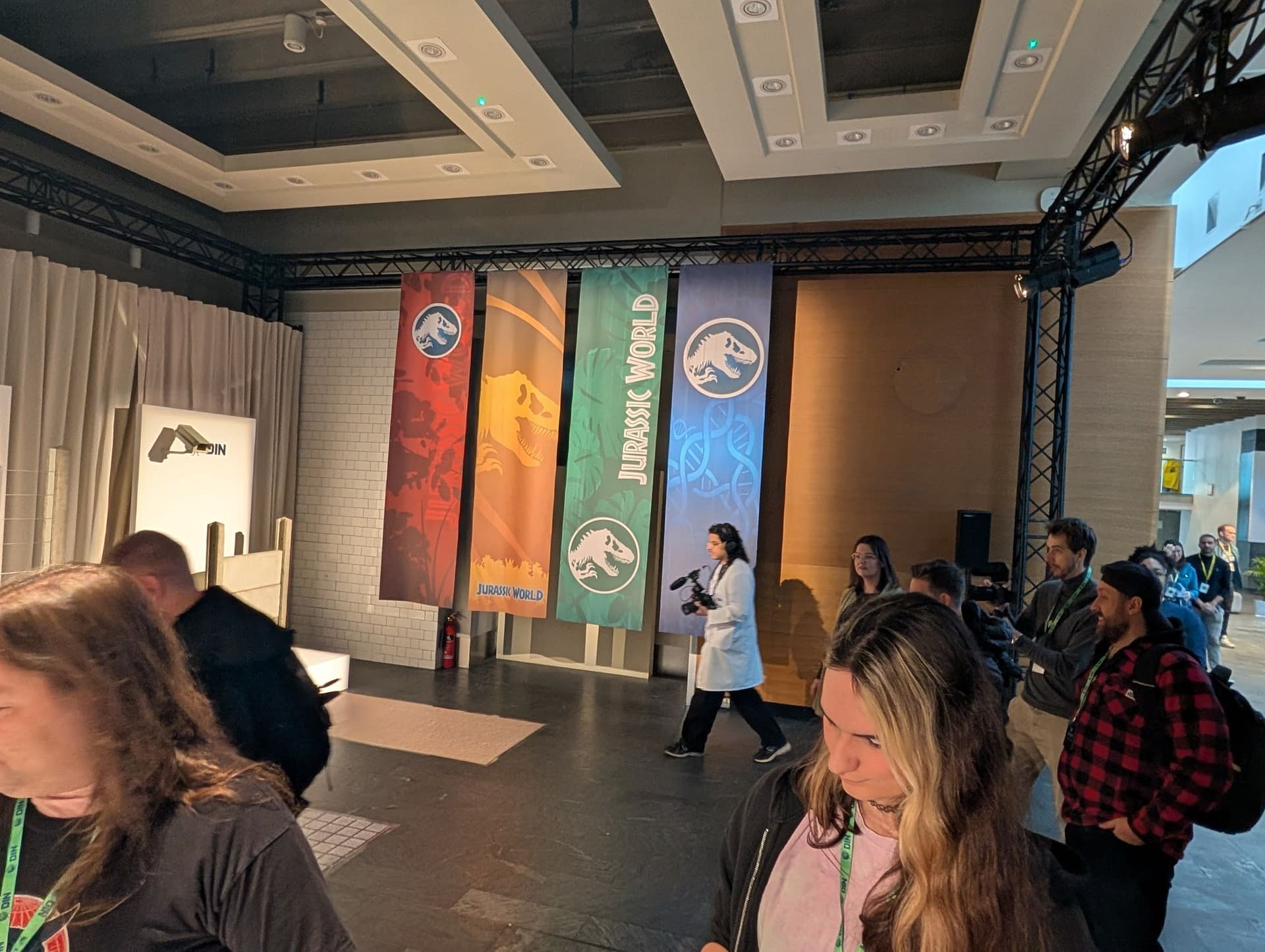 For this particular event, the team took over the old Museum of London location near St. Paul's Cathedral, which has been used for several other awesome things, such as several filming locations for Endor. For us, they changed it into a location for the Dinosaur Intregation Network. Canonically, the game takes place between Jurassic World Dominion and Jurassic World Rebirth, with the reality that dinosaurs now live among us everywhere. So instead of trying to eliminate them or push them into specific locations, the video game world posits the idea that we should just open up parks and research centers all over the world. What could go wrong, right?