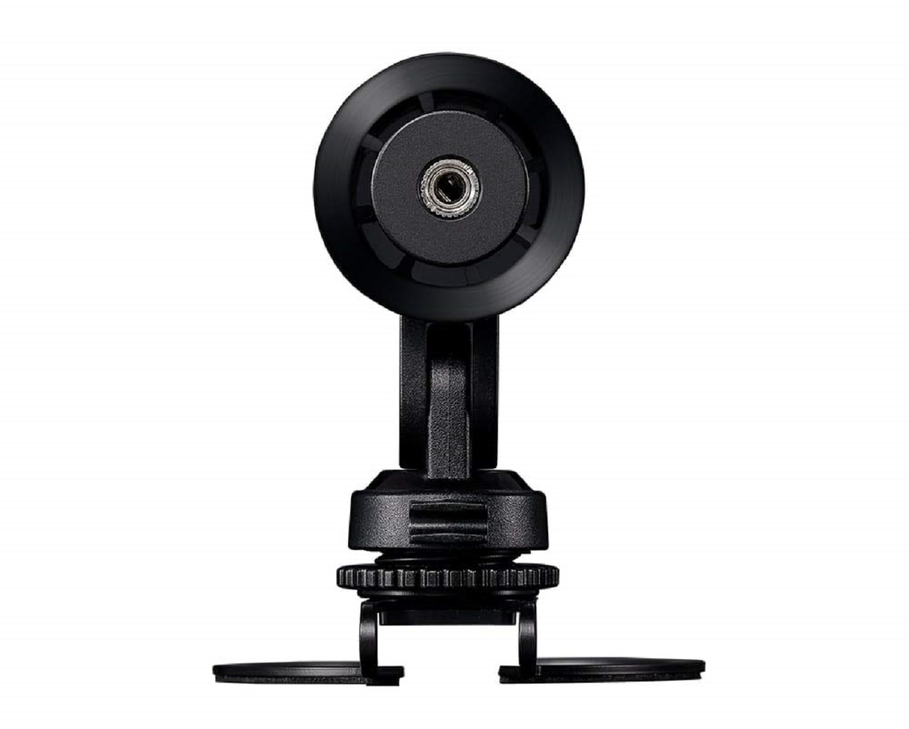 As you can see from the pictures here, it comes with a couple of accessories depending on what you use it for. The first being a metal stand that has a circular base that you can set on a surface, which connects to a Shock Mount. Like most mounts, you can toss this onto a number of devices, as seen below, it fits well on most cameras with the mic attachment. You can also link it up with a number of different attachments for mobile devices if you decide to turn into a recording device on the fly. It's pretty versatile when it comes to throwing something together in a jiffy.