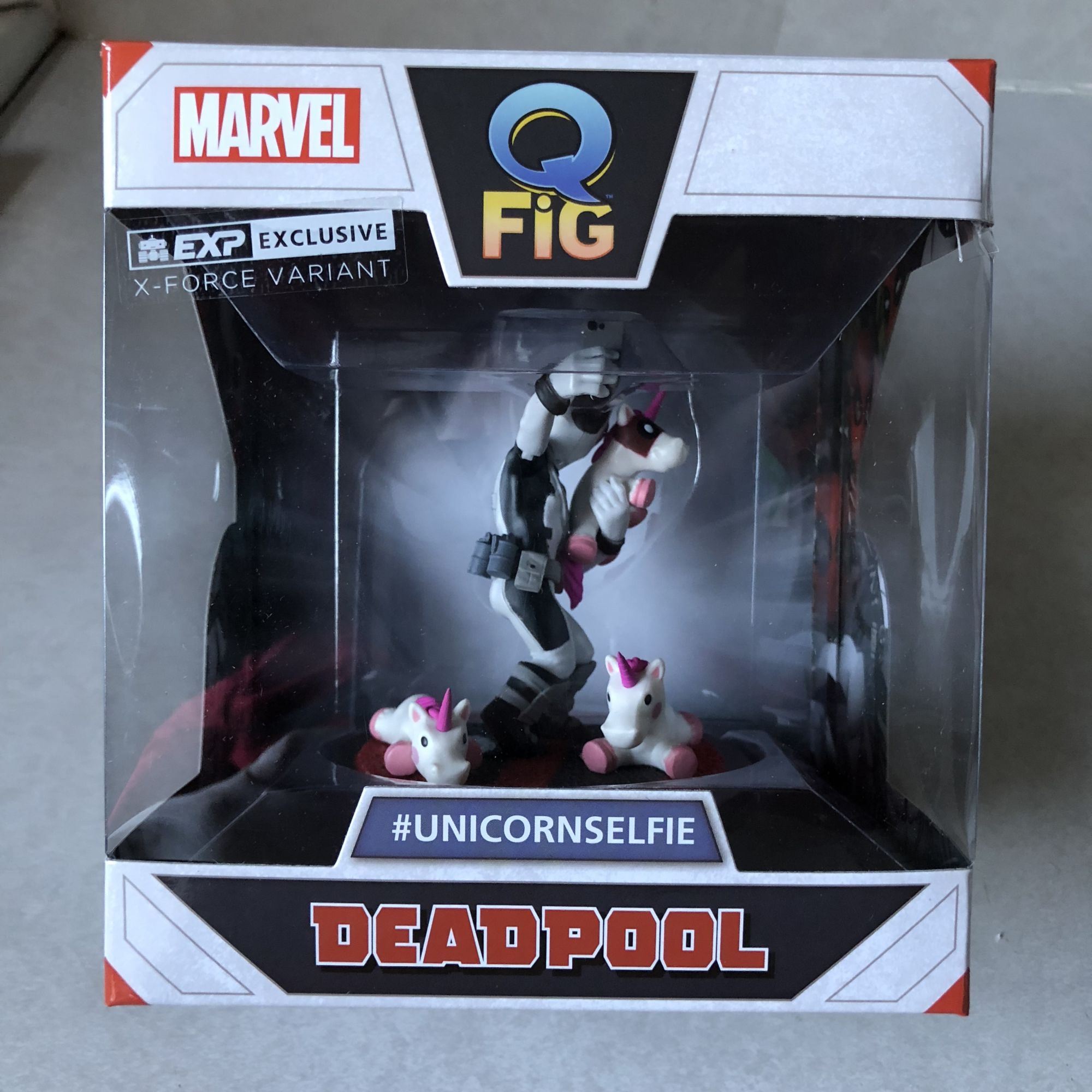 Getting into some figures, the first of two we received is a Marvel Q Fig featuring Deadpool. This one is specifically his X-Force variant called #UnifornSelfie, in which we see him posing with a couple of unicorn toys, and one in his arms with a Deadpool mask. It's a fun figure to have on your desk that has some decent detail, but it is definitely for a specific kind of fan of the character. But still an awesome and fun figure to receive.