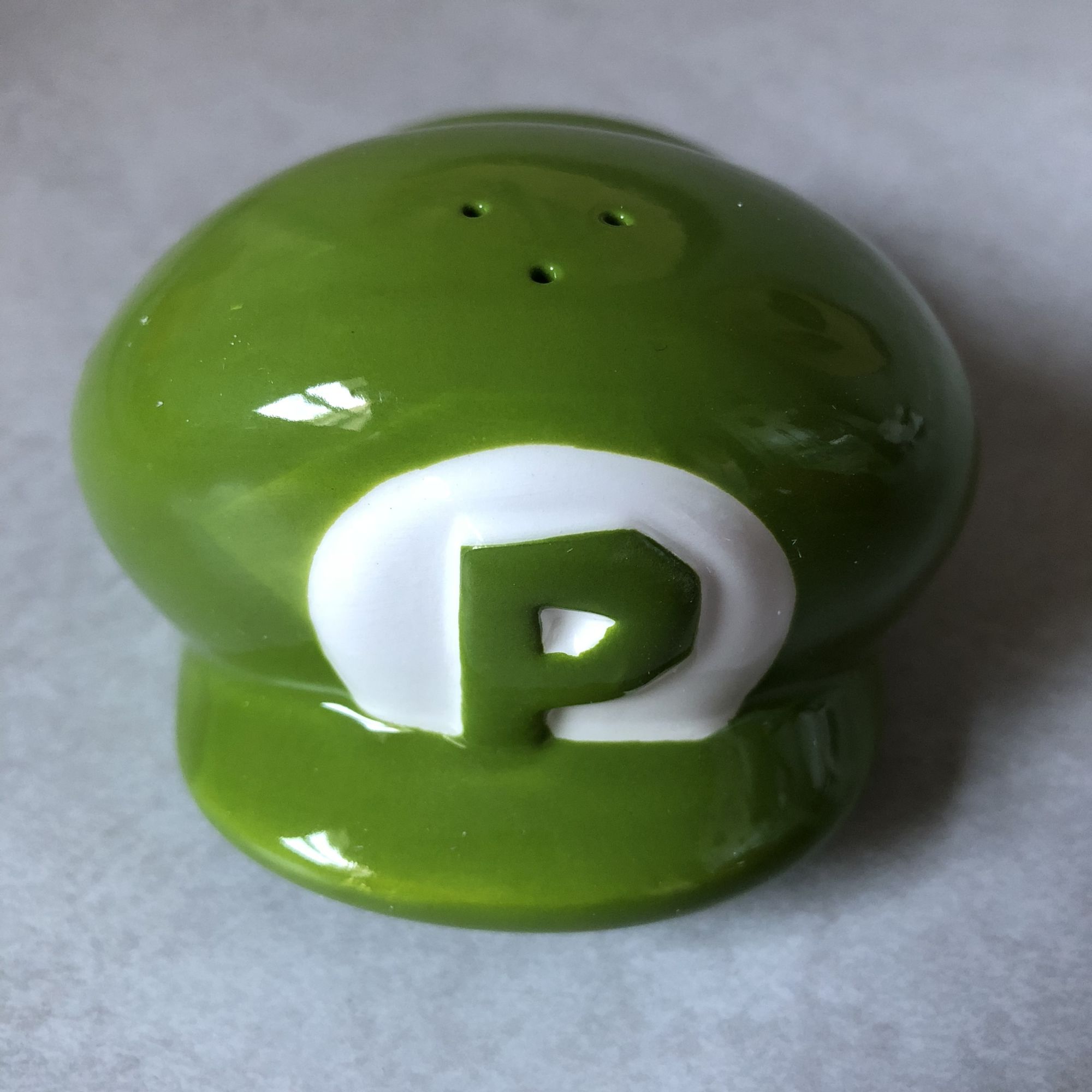 Next was one of the most charming items I've ever received in a subscription box in the form of Super Mario Bros. Super Shakers. We received two ceramic salt and pepper shakers in the form of the Mario Bros hats, with Mario as the salt (fitting) and Luigi as the pepper (depending on what kind of fan you are, also fitting). These are pretty easy to load use, and they're designed so that everything rolls to the top of the cap when upside down. No real complaints about these, but not a lot to say on them either. They're well made and very cool to add to my kitchen.