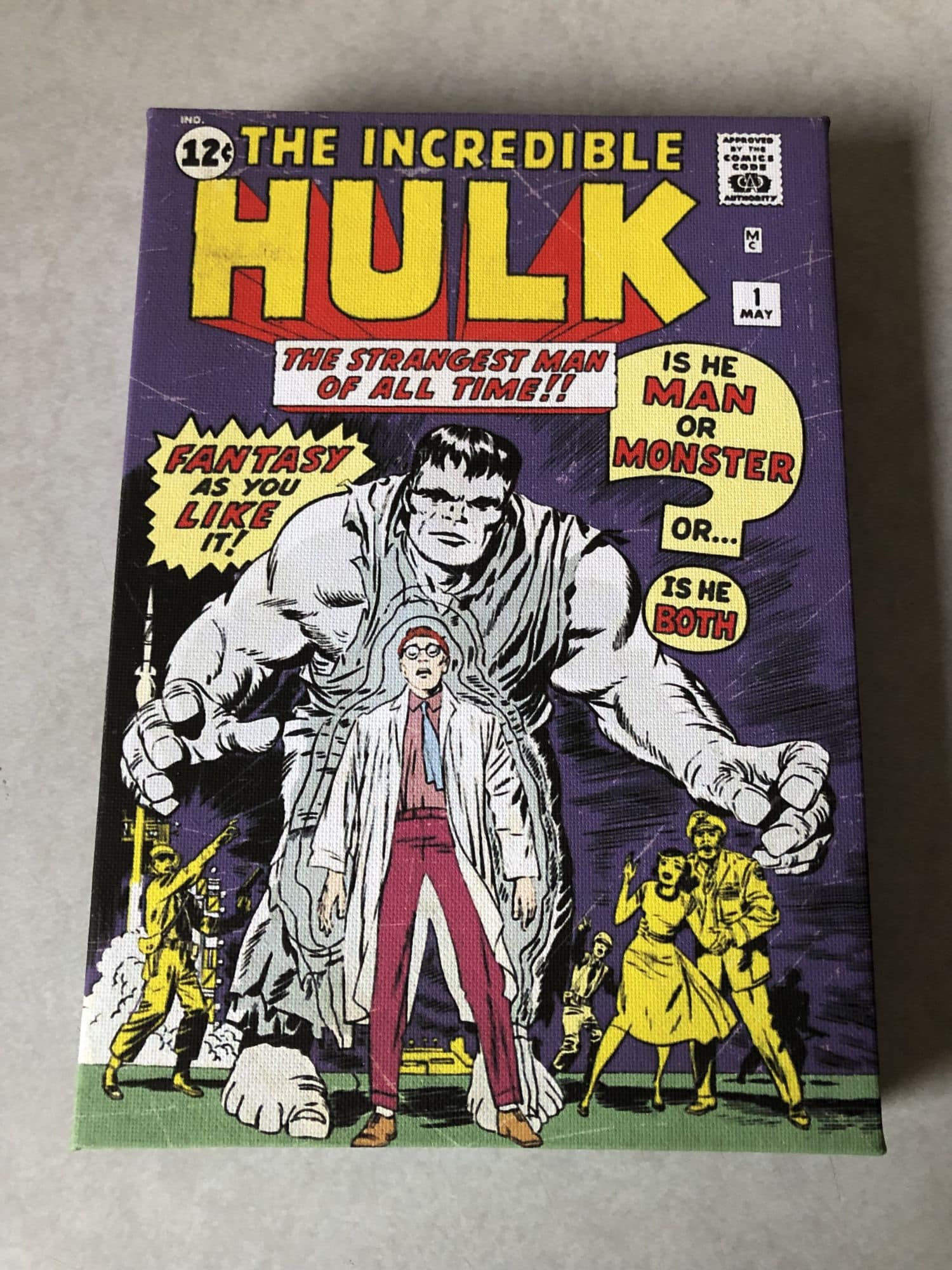 Moving into what's become a tradition for these new sets of boxes, we have some canvas art from Marvel. The previous two were of Wolverine #1 and the first appearance of Spider-Man, this time around we got The Incredible Hulk #1 in all of its glory. I enjoy the fact that they've made these into cool pieces of artwork that show off the old school comics. Don't really have any complaints about this other than maybe the hook on the back could have been better for hanging art
