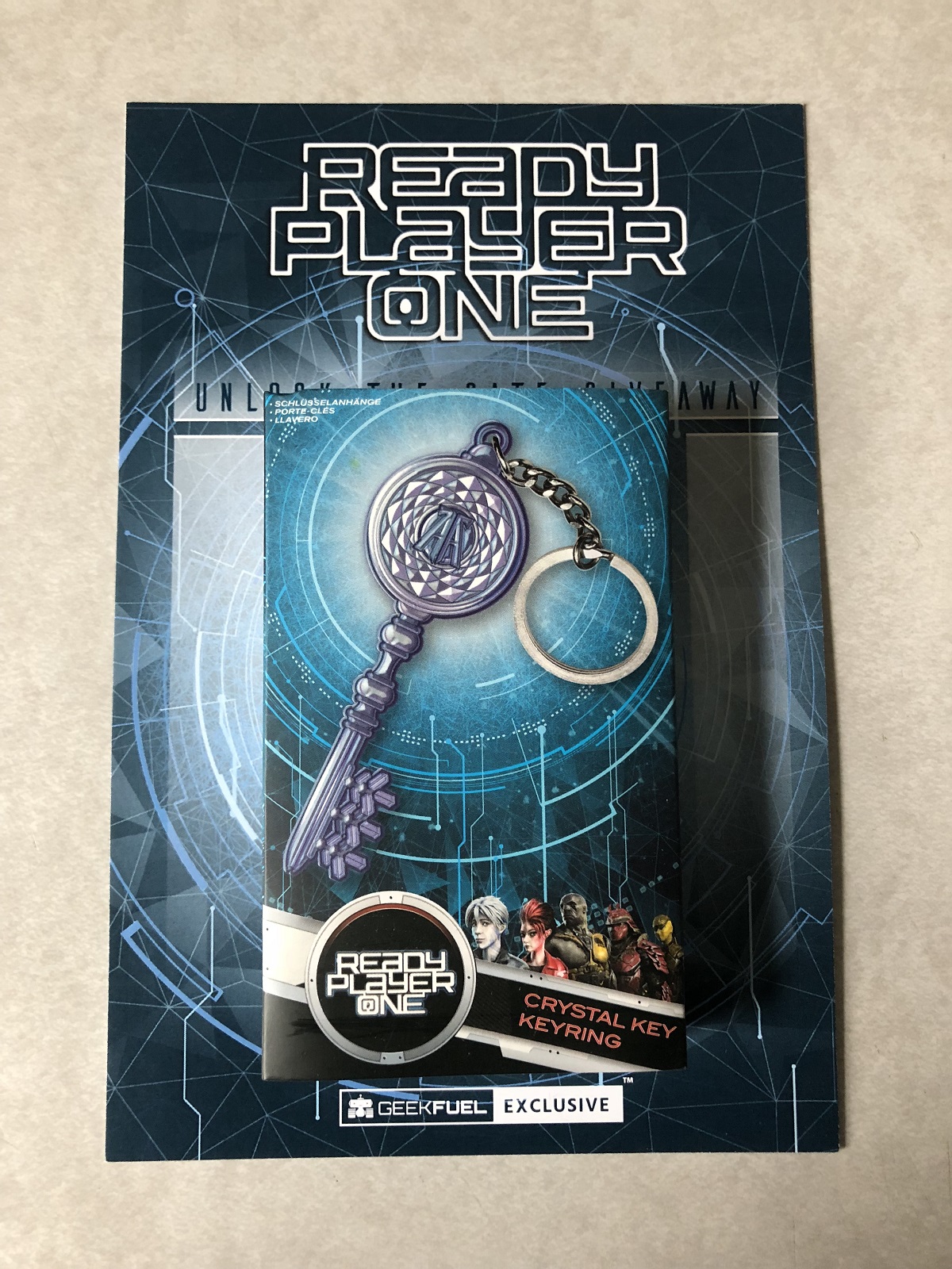 Next up, we got a keychain in the form of a Crystal Key from Ready Player One. This one is specifically based on the design of the upcoming Steven Speilberg film and not necessarily tied into the book. The key itself looks alright, but it's basically a flat metal design with a key printed on it. This looks okay, but it would have been much cooler to have an actual key that looked like the Crystal Key rather than a print job. The key also comes with a chance to win an HTC Vive, which we didn't win, so best of luck to the rest of you!