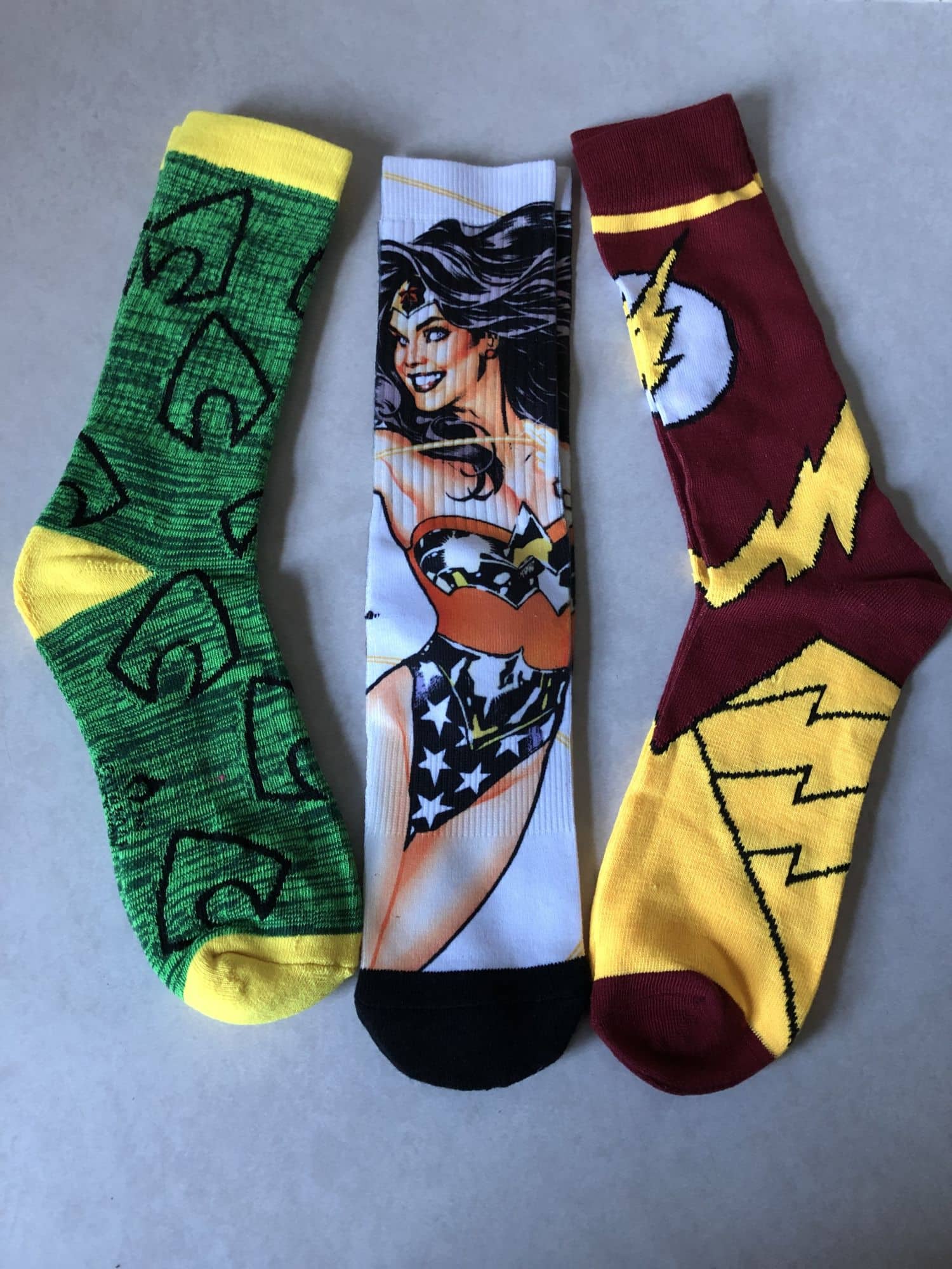 Moving onto clothing, this month I got three pairs of socks. Because, of course, I did, it's the December box. The three pairs I got were of Aquaman, Wonder Woman, and The Flash. This was a nice surprise as I usually have black socks for formal events, but having dress socks with superheroes on them makes me laugh a little. Here, Aquaman gets some justice back as his were the best and warmest to wear, while the others were so-so. I'm looking forward to pissing someone off by wearing Wonder Woman on my feet, because someone's bound to take offense to that somehow. These were a winner, too.