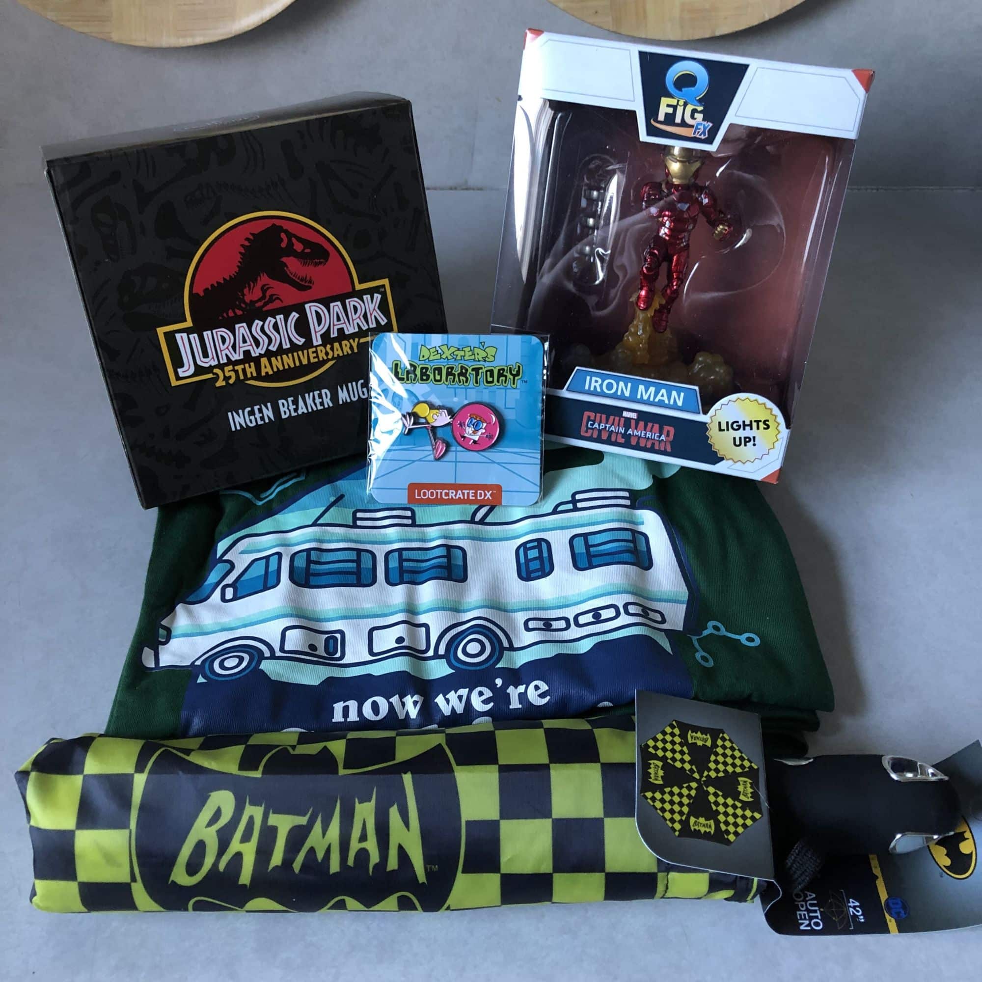 Posted in: Games, Review, Subscription Box | Tagged: Batman, breaking bad, Dexter's Laboratory, iron man, jurassic park, loot crate, loot crate dx, subscription box