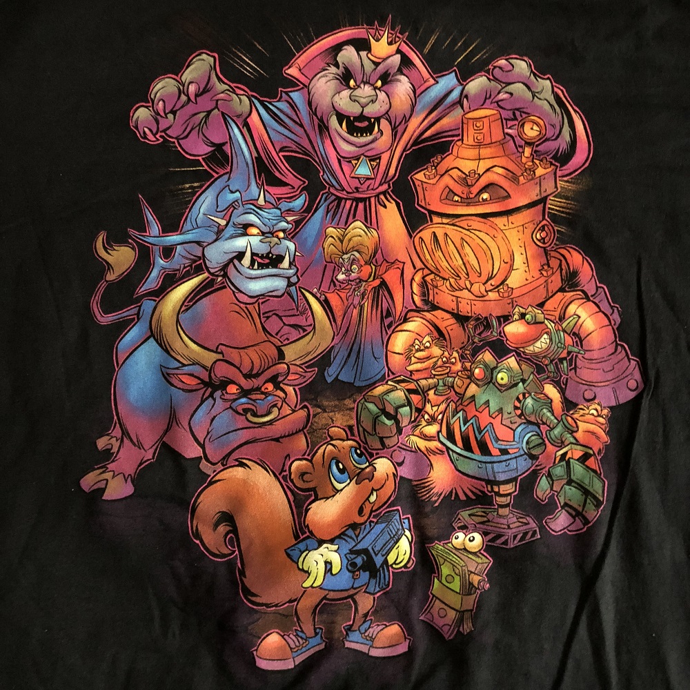 Finally, the make or break item for the box: the t-shirt. This month is a colorfully designed character shirt for Conker's Bad Fur Day. The characters are set up and presented in a way that mimics Disney Afternoon cartoons of the early '90s. This is actually a really tight design that makes me smile looking at it, designed to give every character their own highlighted moment while not overshadowing each other. Even the Panther King looks great in comparison to a worried-looking Conquer. No real complaints about the short, this one is a winner!