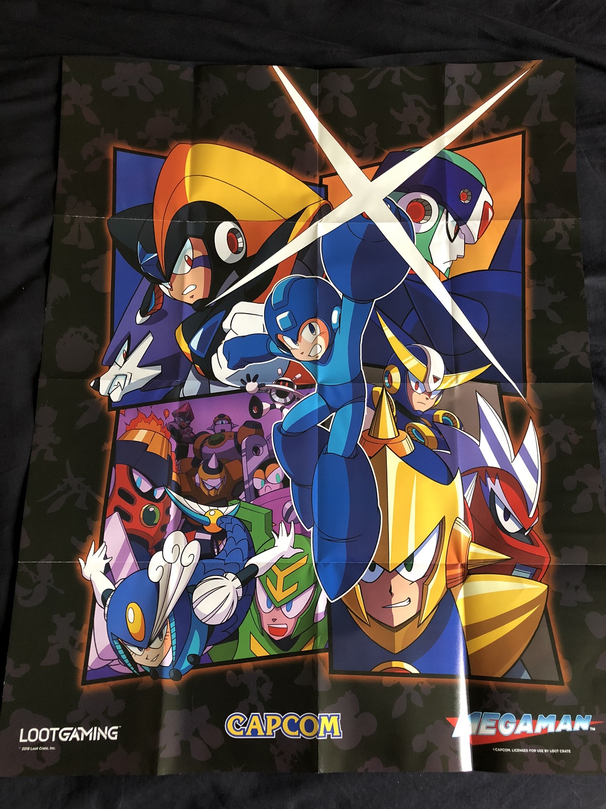 While we're on the subject of Mega Man, the poster in this month's box is that of the artwork for Mega Man Legacy Collection 2. Kind of an interesting choice to make as it's more of a collage poster for a recent release as opposed to focusing on a single game, but also odd that they didn't go with Mega Man 2 or 3 as they are more of the iconic titles in the original series. The poster is really cool, but still has the issue of being a folded poster as opposed to a rolled up one, forcing us to deal with the creases. That being said, thsi is one of the better posters we've seen in a while.