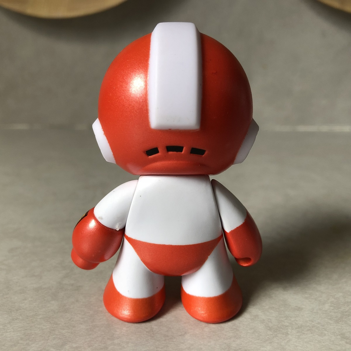 The other figure to come in the mail was a Mega Man figure from Kid Robot, one of the special mystery box figures where you have different odds of getting different figures. This particular set was made of up enemies and allies of the very first Mega Man game. The particular figure we got was the red and white variant, which is the design he takes on when working with Rush. Which yes, we realize is a contradiction, since Rush didn't appear in the series until Mega Man 3. But hey, you gotta get to 14 figures somehow, right? Apart from the arms and the head being able to move, he doesn't really do anything else but pose for you. We can go either way on this one, as we would have much rather gotten the Yellow Devil figure.