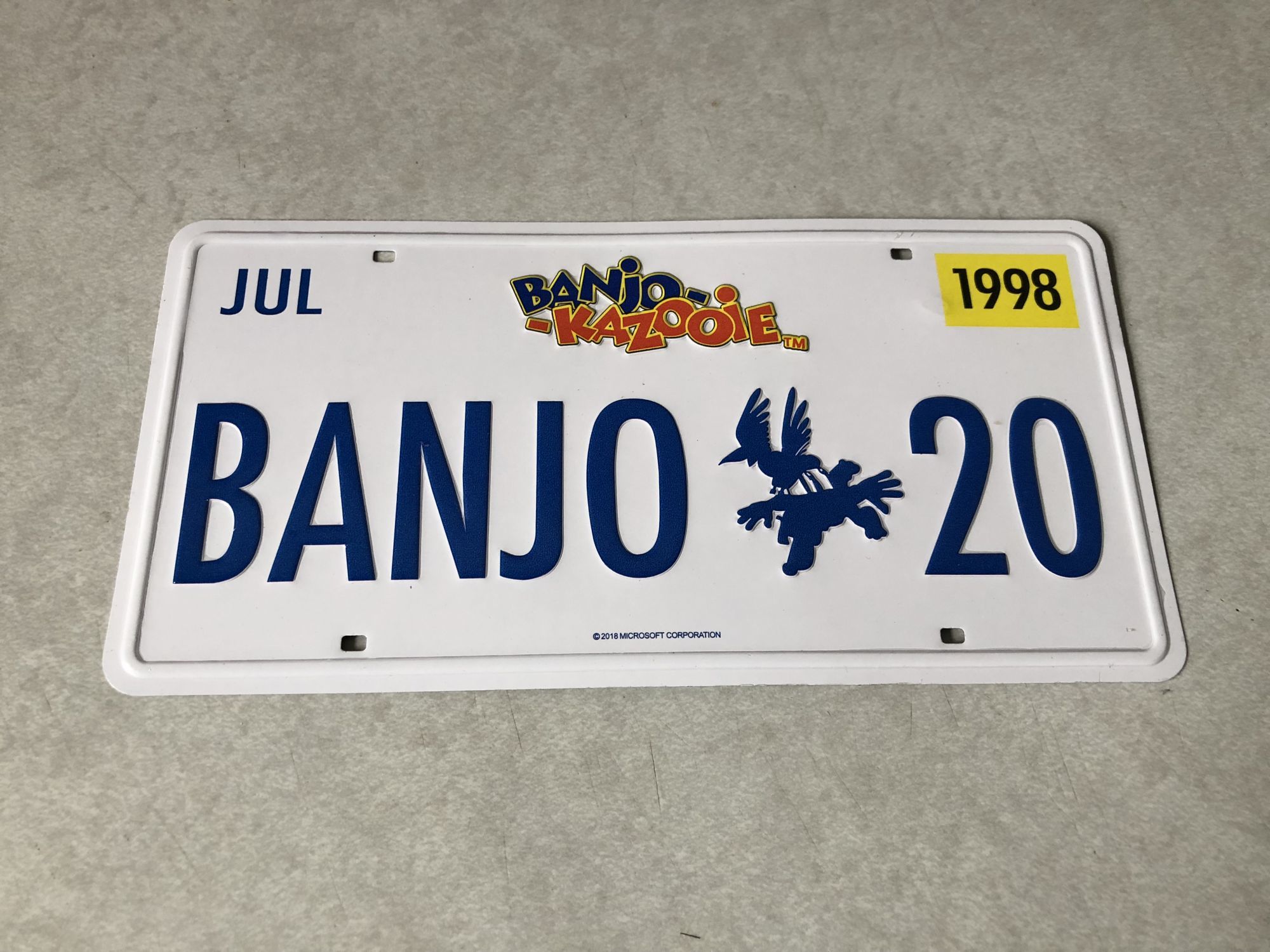 Moving onto an item from a previous box, this is a special 20th Anniversary license plate for the game Banjo-Kazooie. This was supposed to be an item in another box from two months ago but wasn't produced in time. Now that we finally have it… it's a bit of a letdown. They made this thing sound like it was going to be an awesome collector's item, but it feels like something I could have snagged from GameStop. And much like an item from GameStop, it's missing stuff. Below is a supposed holder for the item, but it doesn't fit the item in any way/shape/form. It's smaller than the plate in every respect. It doesn't stand alone, if anything, it needs a second one to work. This was an absolute waste and not even worth of Banjo-Kazooie, and whoever conceived it should be embarrassed.