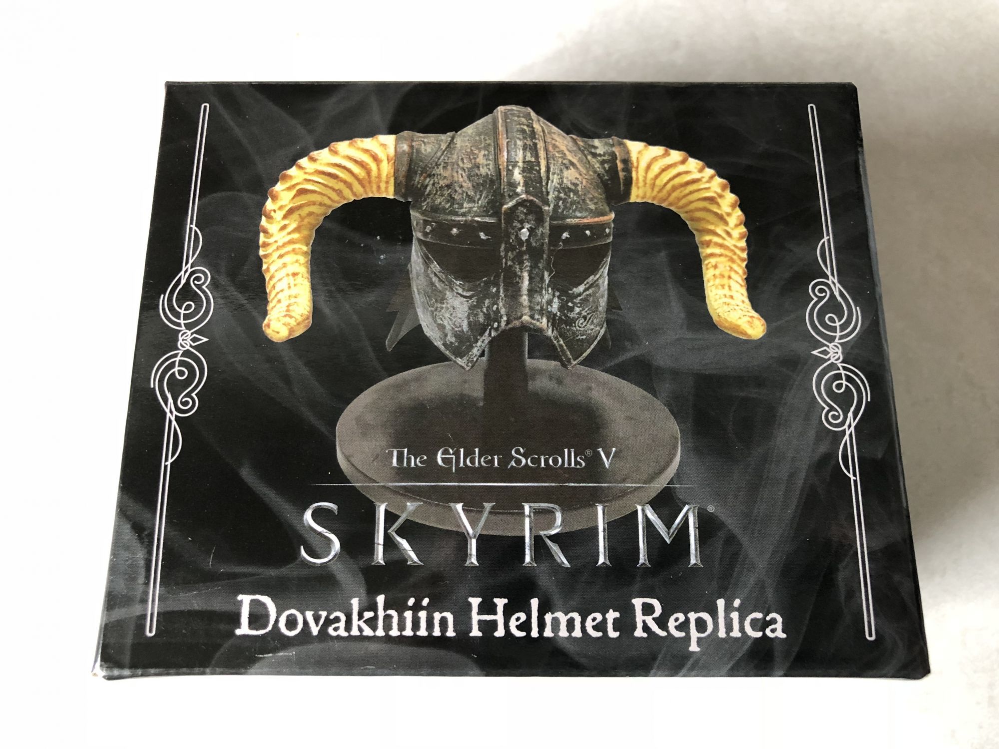 Next up we have a Skyrim Dovakhiin Helmet Replica. This is basically just a miniature reproduction of the helmet put on a stand for you to have on your desk or up on a shelf. It looks amazing as far as the design goes and if you're an Elder Scrolls fan, this is a must own. But that's basically all it does, it just sits there. I liked it a lot for the design.