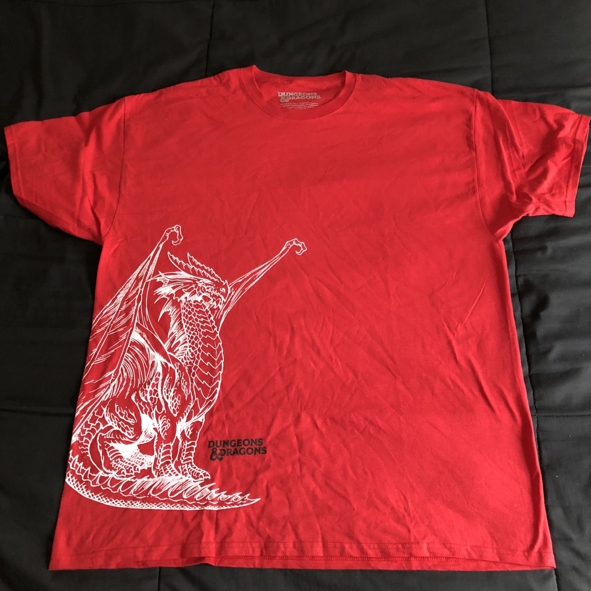 Finally, the make-or-break item of the box: the t-shirt. This one is also D&D themed as we get a bright red shirt with a dragon illustration on the left and the game's logo. While it does look pretty cool, we're not so hot on the design placement. It feels like those old bowling shirts where a dragon would be on one side of the shirt. It feels tacky, which is a shame, considering our love for the game.