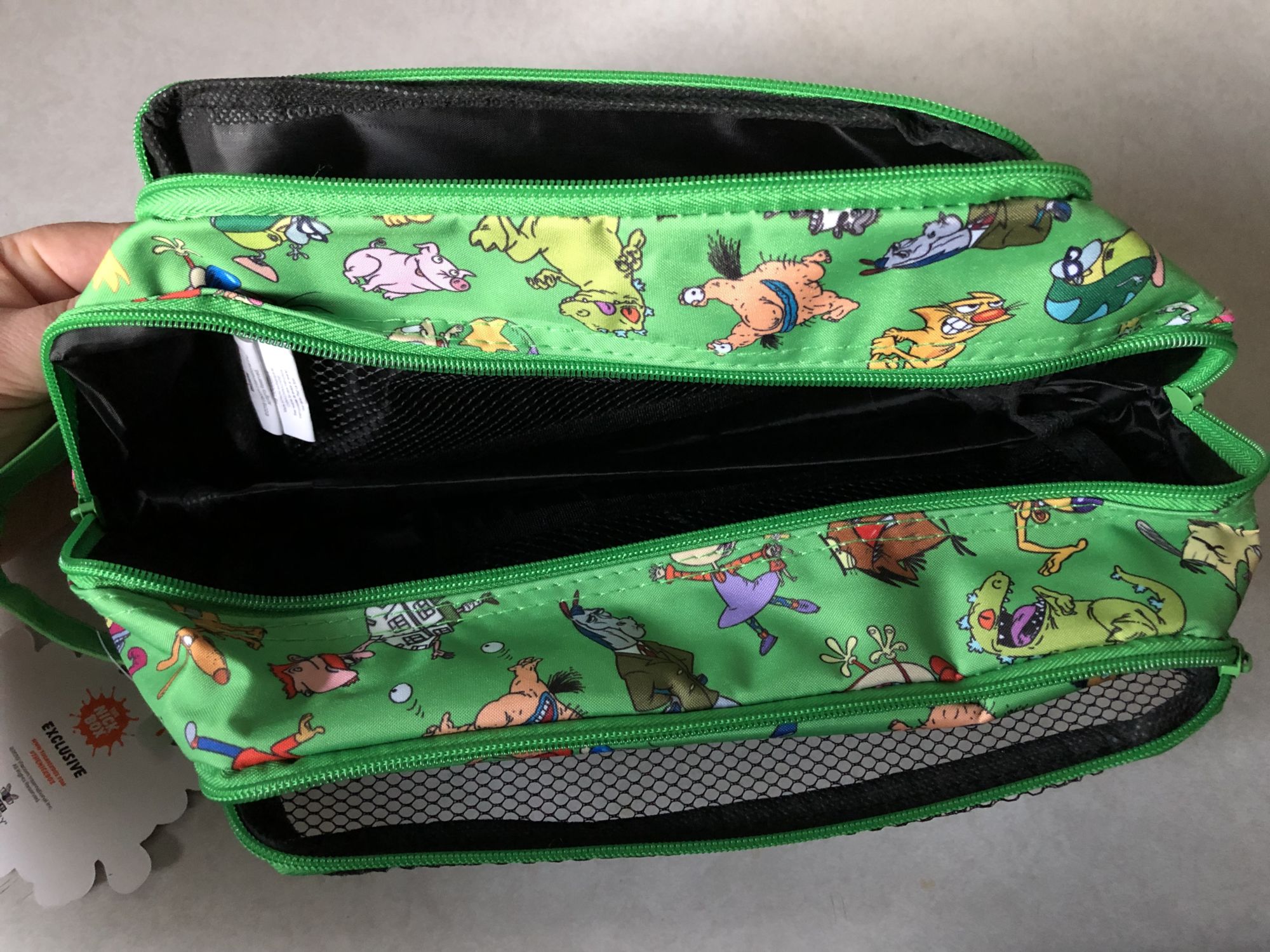 Moving onto some that's just an overall Nicktoons related item, we have a toiletry bag. These always come in handy on trips, and after a few years of heavy travel, you always wear one out. So this is a fun one to have either as an adult or to get kids used to as they travel. It's made from some hefty materials with a main pouch, a side pouch, and a mesh net on the other side to carry various items. This is one of the better items in the box, in my opinion, as this will get years of use. Doesn't matter your age, this is just a cool item to have.