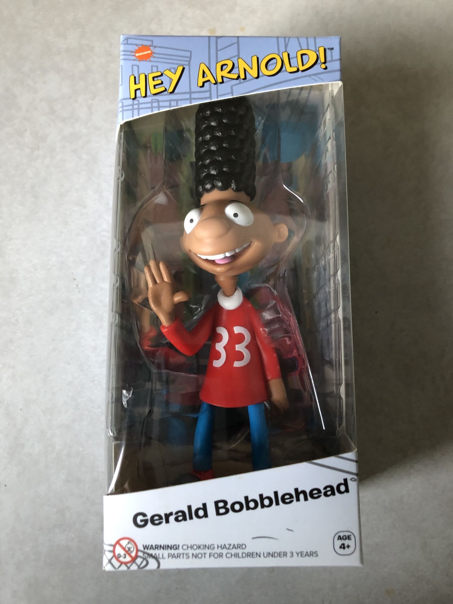 The first of two vinyl figures in the box is a Gerald Bobblehead from Hey Arnold! This one was pretty well done as they managed to get his hair to be perfectly balanced so that when the bobble is in effect, you get the full swing and not just a flimsy one that does out in two seconds. The jersey, the manhole cover, the jeans and sneakers, all feel like they're ripped from the series. I like this one a lot, better than many bobbleheads we've received in the past.