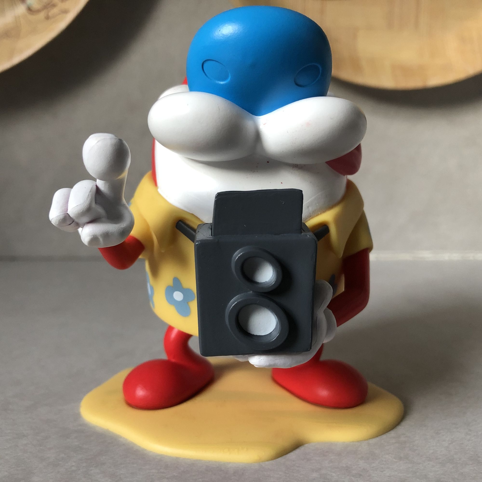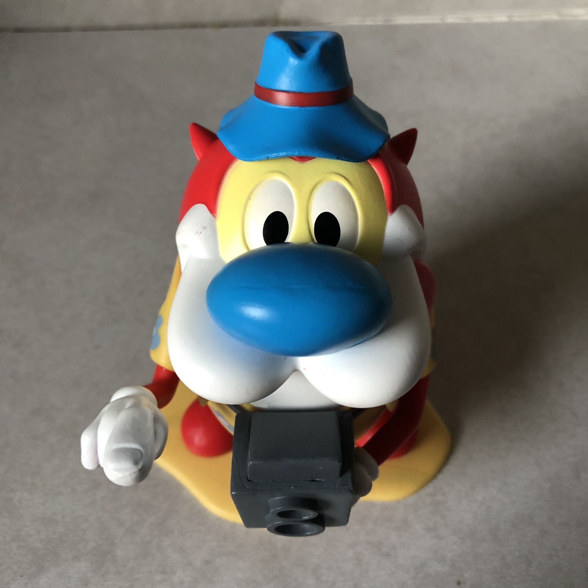 The other vinyl figure, which doesn't really move, is a vacationing Stimpy from Ren & Stimpy. I honestly took a moment to look this up because I couldn't figure out if this was from an episode or if this was just a design they made up for The Nick Box. And after going over my DVDs and some clips online, I now know it's the latter. Which is kind of weird, I prefer it when figures have a reference or a purpose, not just gimmicked for a theme. But it's still a cool looking Stimpy figure as he bombs around your home taking vacation photos.