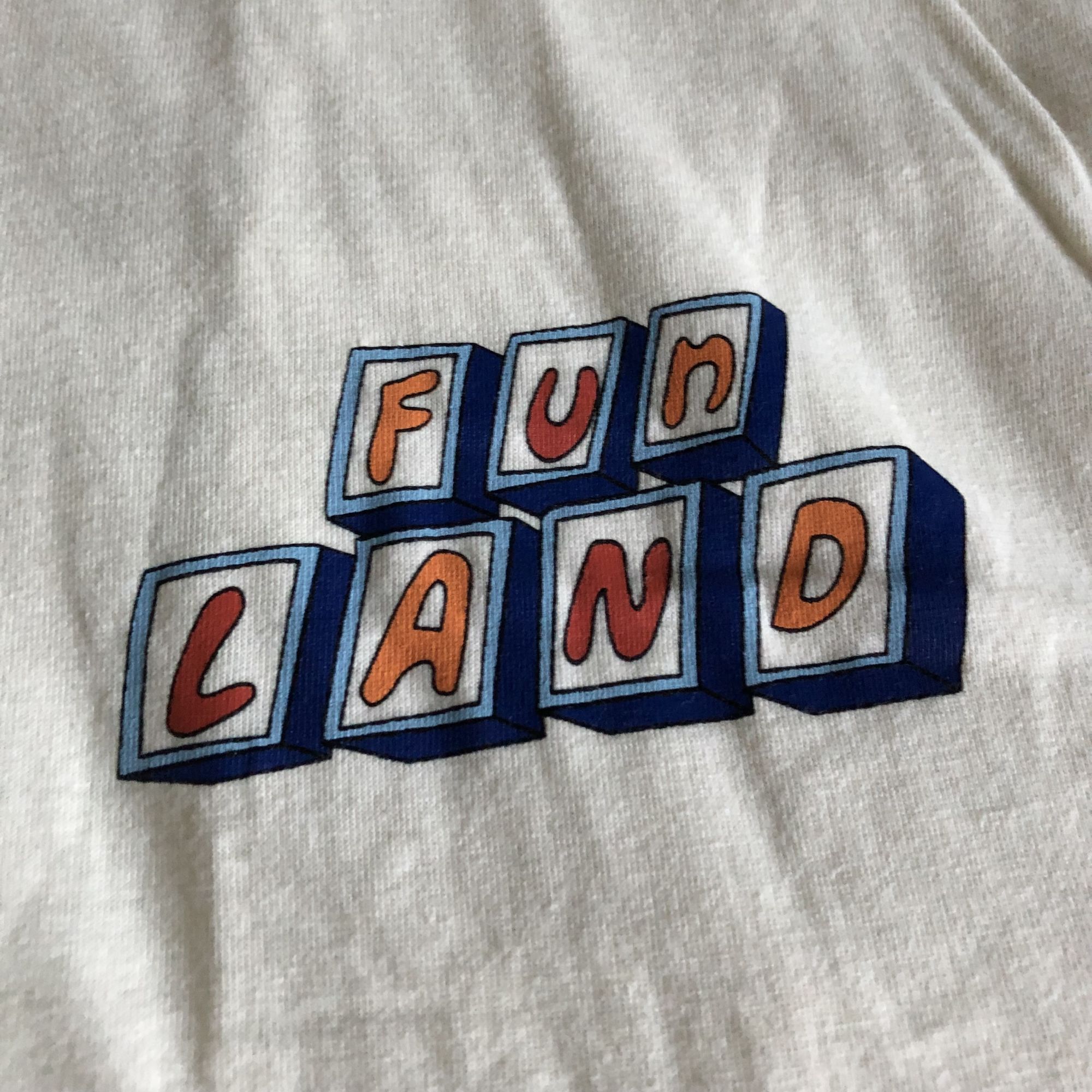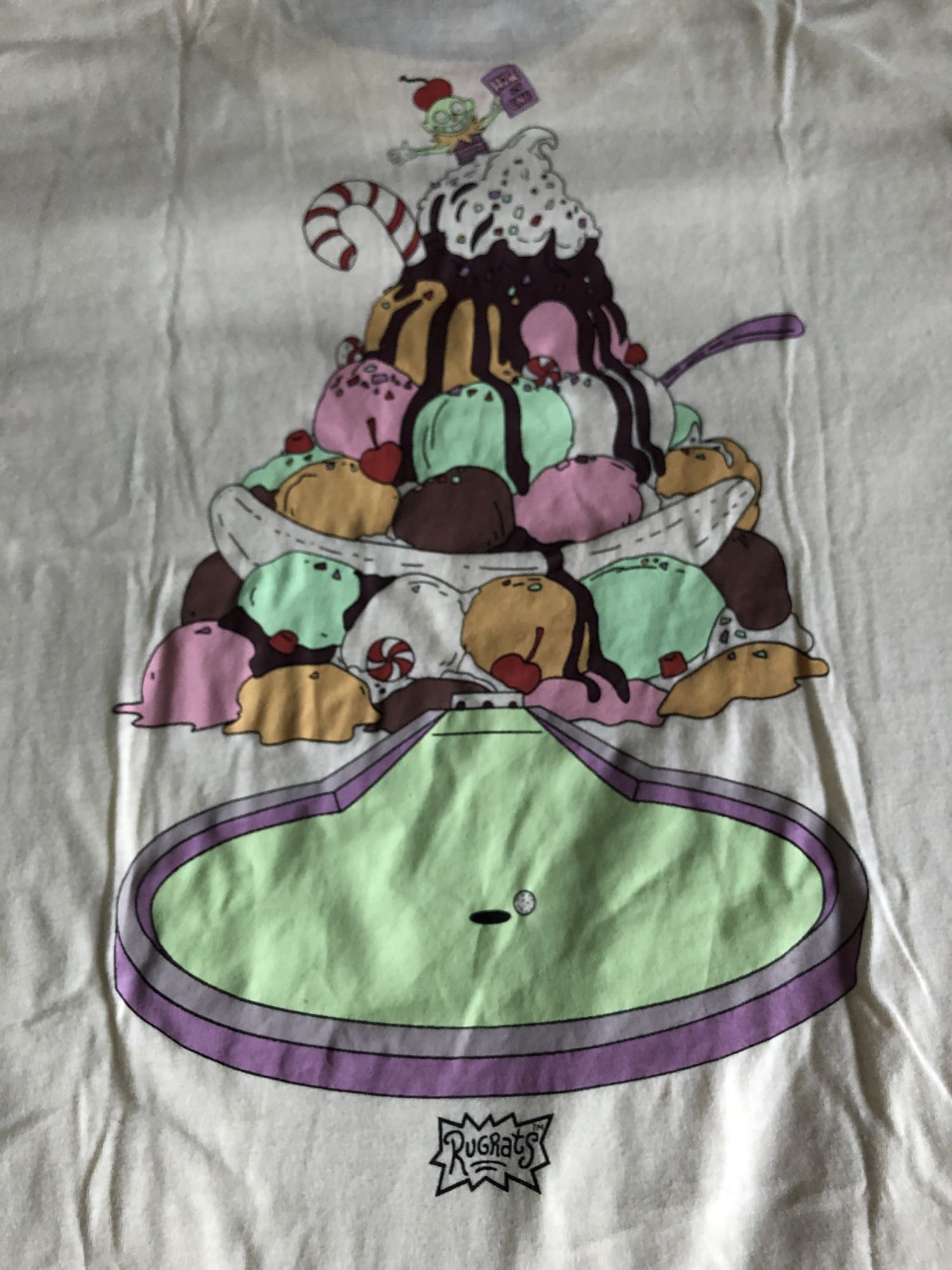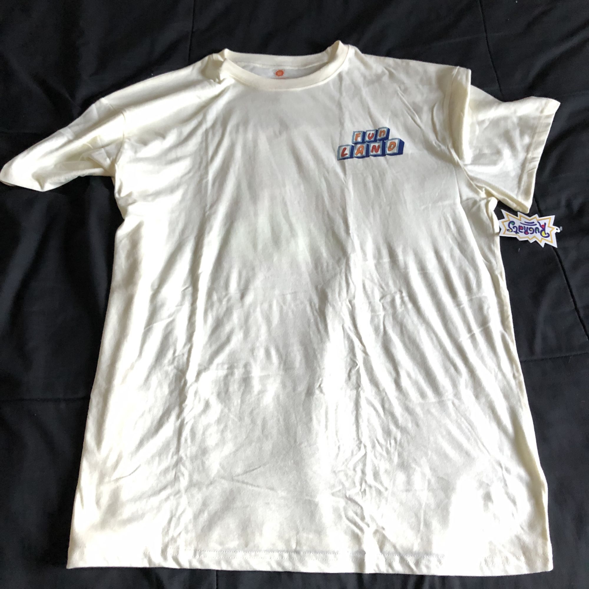 The last item is a weird Rugrats reference as the t-shirt is a tribute to Fun Land. This is a t-shirt from a theme park in the show where the kids travel to the final hole on a mini put-put course called Ice Cream Mountain. The mountain turns out to be fake, and eventually, the kids get a real mountain of ice cream at the end. The shirt has the Fun Land logo on the front and the final hole of the course on the back. It's a cool shirt, but it's also a weird one that only longtime fans would get. Also, a weird choice of a cream color.