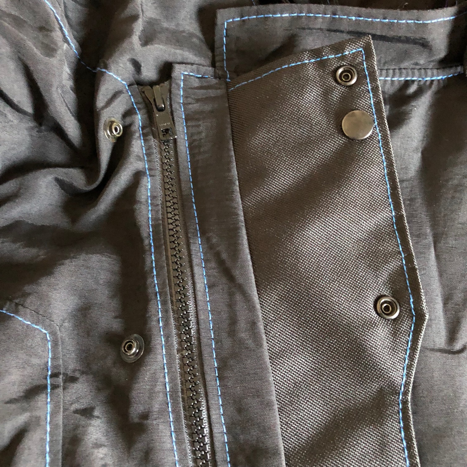 The front of the jacket is a zipper/button combo. As you can see here, you zip the jacket up first and the button over the top of it to give the jacket a signature look as if it were some sort of military or official garb, which I found quite appealing. There's also a second button set on the right side so if you decide to unzip the jacket and walk around with it open, you can button back the overlapping flap so it's not just hanging down. That's a lovely piece to this design that makes it very functional if you're getting warm.