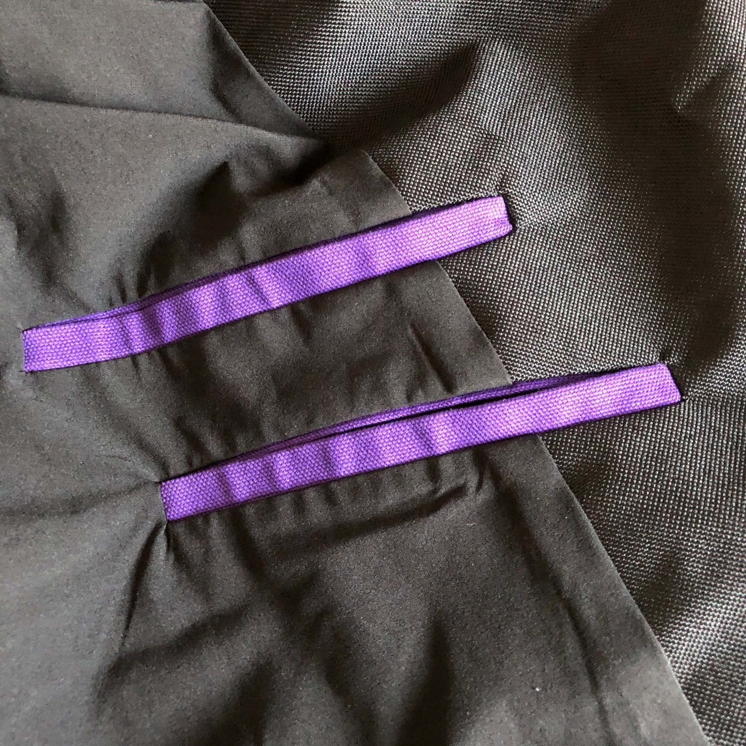 The top part of the jacket has a removable hood. I absolutely loved this for a couple of reasons. First, it makes it versatile depending on the weather or the type of character you're playing. Second, this was a tri-fabric design so there's no pointed end on the top of the hood like you would see on a two-sided stitch. Third, it makes the jacket more of a utility when you need it as opposed to forcing a hood to hang off it all the time like a hoodie would. And fourth, the inside is quite comfortable and allows you to create hwoever much space you want between your head and face and the fabric as you desire.