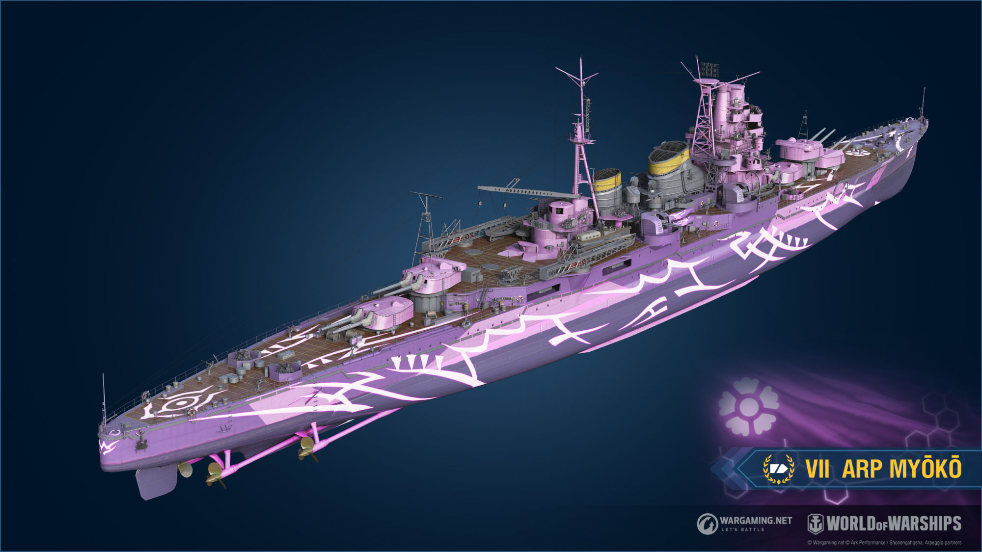 - ARP Takao which is a versatile heavy cruiser with powerful artillery, torpedoes, high speed and low detectability. The ship comes with the alternative Arpeggio permanent camouflage.