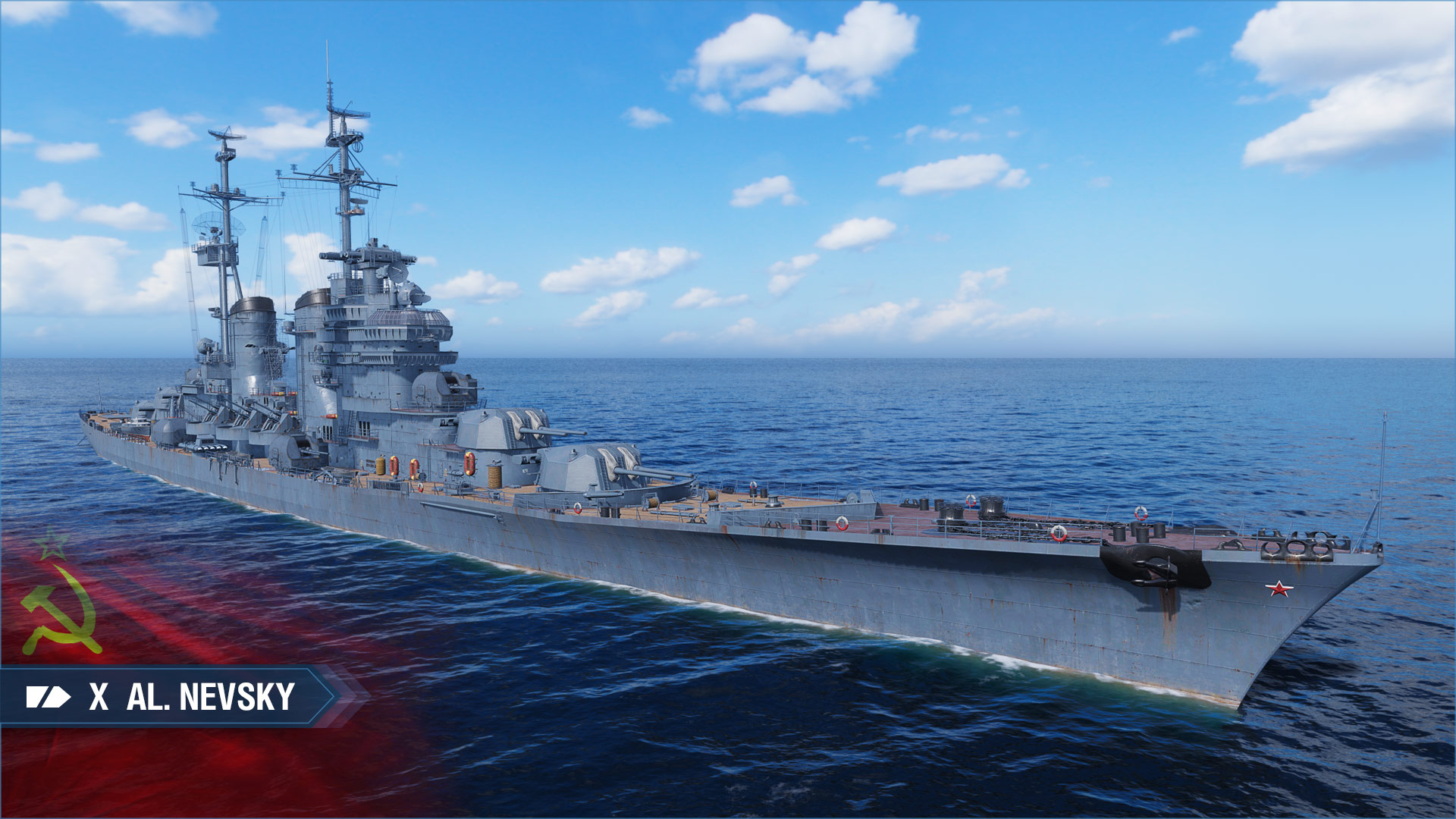The updated Dockyard mechanic is the main feature of Update 0.9.5 and allows players to construct the VI Admiral Graf Spee in "War Paint" camouflage, as well as obtain the VIII Odin heavily discounted upon completion. This ship's construction is spread out across 20 shipbuilding phases of which 18 can be finished by completing Directives. The remaining two phases can be settled by spending Doubloons. In addition, the Soviet branch will grow with new ships and see additional changes. The Tier X Moskva will become a special ship, obtainable by spending the in-game Coal resource. Moskva's place will be taken by the light cruiser Tier X Alexander Nevsky. The Tier V Kirov becomes a premium ship with the Tier V Kotovsky replacing her as a light cruiser.