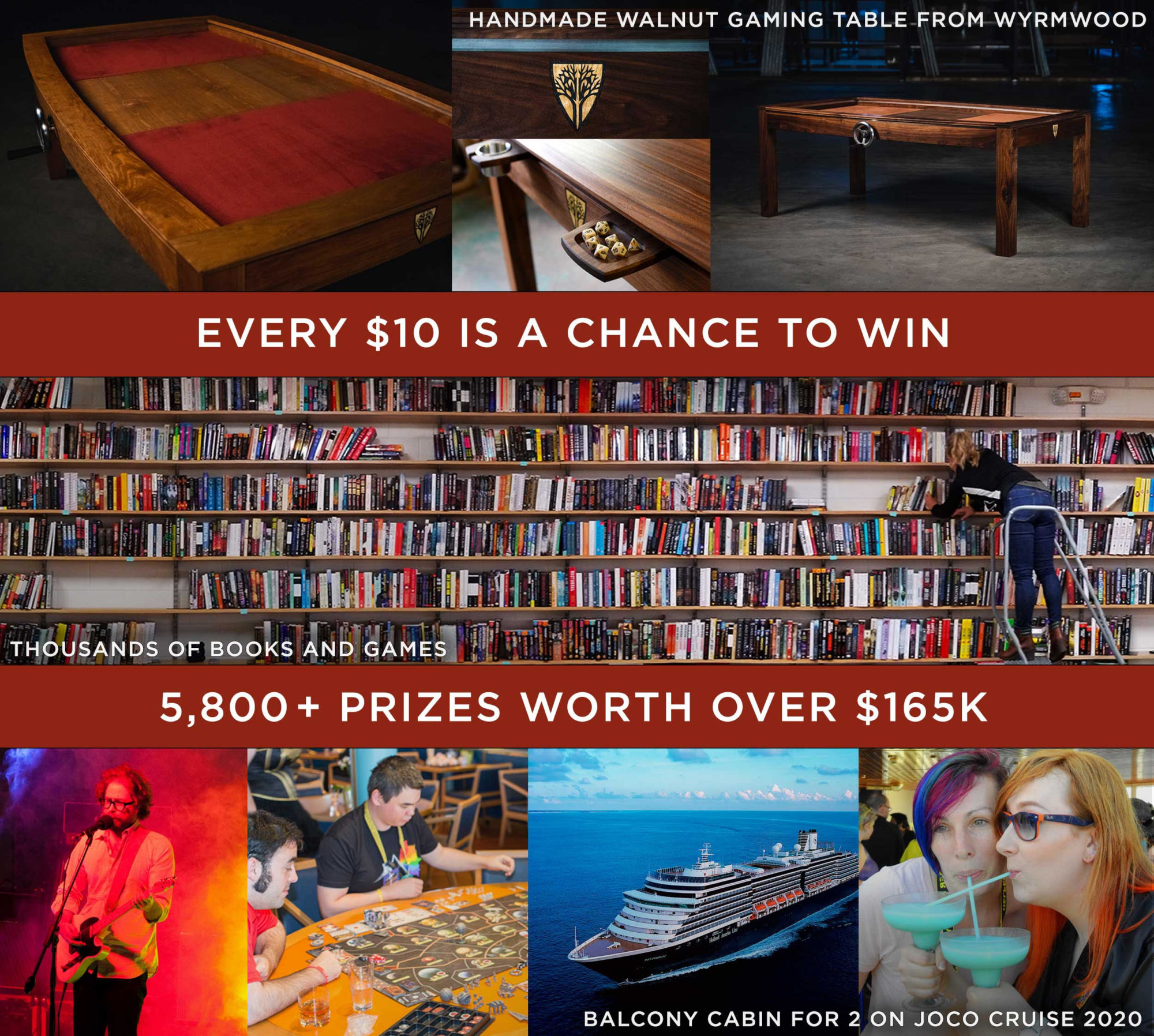 Well, Worldbuilders started with me and my book friends, people I knew from conventions. So authors donated books and then people donated to our fundraiser, which all that money goes to Heifer, and then we would give away books. I gave away signed books and other author friends would donate signed books and then we shipped them all up to the winners. The first year we had like, a shelf of books, and I was really proud of it because it was all just like off the cuff. Then the second year it was kinda more of the same except that year a publisher came in too, and donated a bunch of books. This year we're giving away $170,000 worth of books and games and comics, because I know people who make board games and comic books and and [people] in the publishing industry. But I've always wondered how I can bring the D&D crowd in. So that's why this year we decided to do something different to try to give them something cool that they could win if they donated.