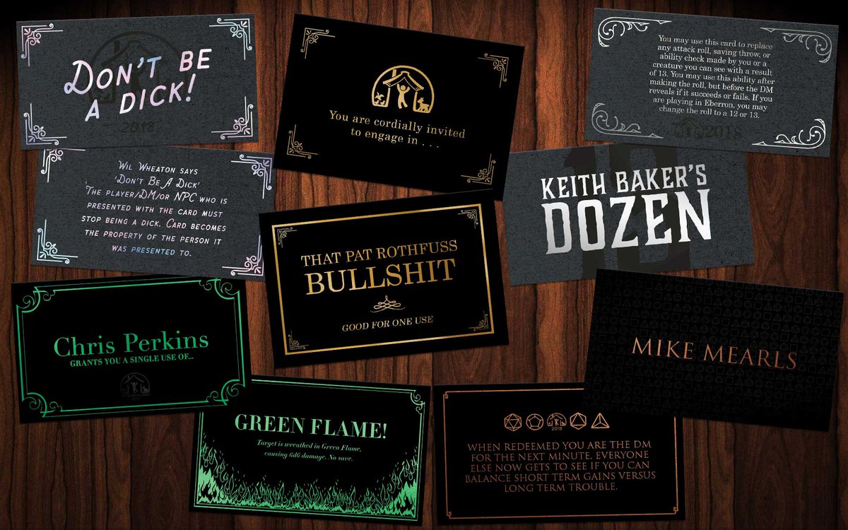 Yeah, and he really does. He puts his head down and he does beautiful work. And I think he's just he's like, "I did it for a while and it was good." I think he's doing an amazingly gracious thing stepping aside and letting somebody else try it out. I'm curious to see how the game changes. It will be different and it will be cool. I'm really excited to see it. We just finalized his [Worldbuilders] card today, because Chris Perkins is doing a card for this D&D Worldbuilders thing. His will be, of course, that you are able to call upon the power of green flame. Just today actually we confirmed Mike Mearls, Nathan [Stewart] and Jeremy all are coming in and doing cards with us as well.