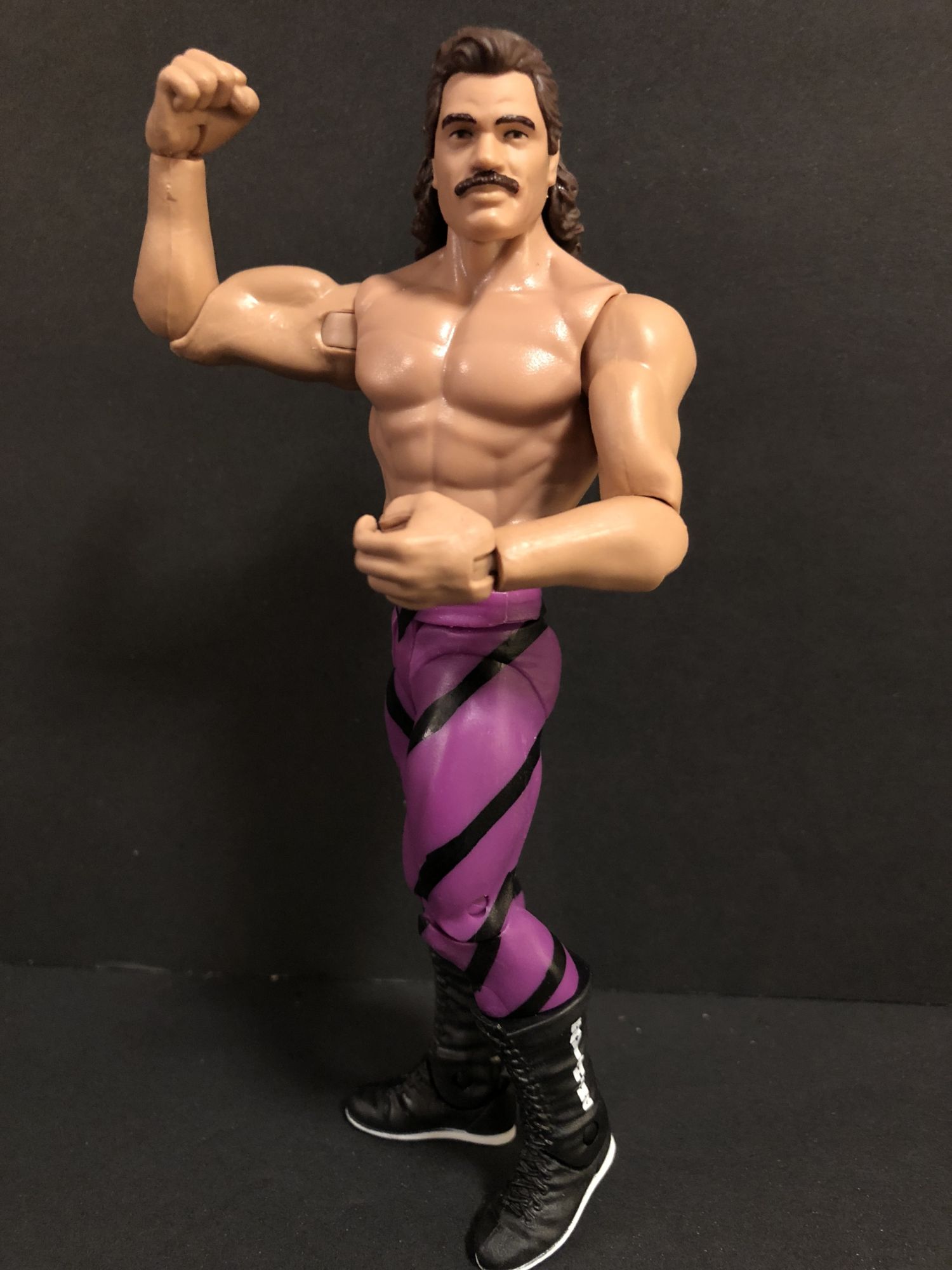 This was never my favorite look for the Million Dollar Man Ted DiBiase but it still looks awesome. I wish he had a cackling face portrait too, he doesn't look quite right with that scowl on his face. If I had to pick my least favorite from the wave it would be this one. The Rick Rude however…this may be my favorite Basic of all-time. A flawless sculpt, perfect attire choice, everything about this figure is great. Even the mullet looks fantastic. A welcome addition to any collection.
