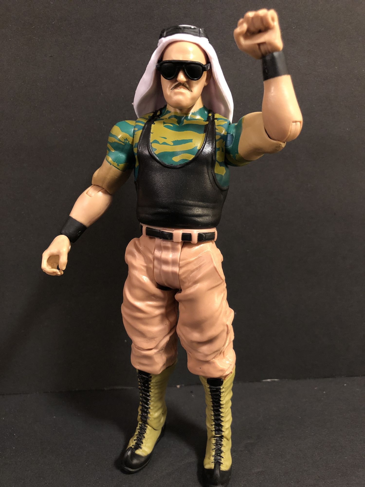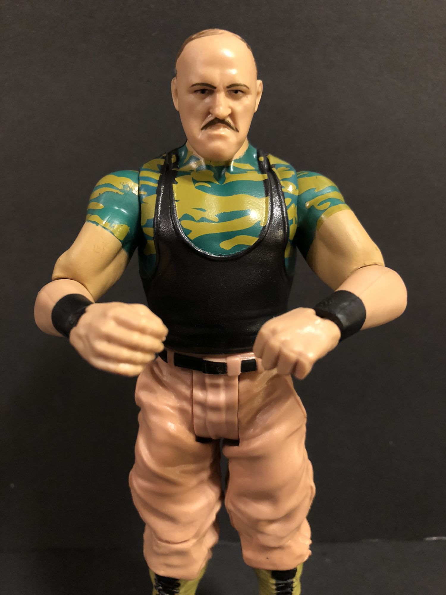 Looking at the figures themselves, this wave is pretty spectacular. Each one has great attention to the little details that put them over the top from good to must-buys. Sgt. Slaughter is based on his turncoat years where he decided to turn his back on America. I never thought we would get this figure, so I had high hopes for it. They were exceeded. Right down to his pointy boots, this is my new favorite Slaughter figure. The Cowboy Bob Orton figure comes with his signature cowboy hat, and it even sits high on his head like he wore it for all those years.