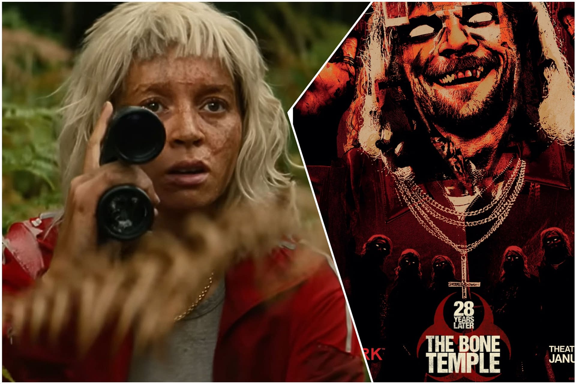 28 Years Later: The Bone Temple, directed by Nia DaCosta, stars Ralph Fiennes, Jack O'Connell, Alfie Williams, Erin Kellyman, and Chi Lewis-Parry. It will be released in theaters on January 16, 2026.