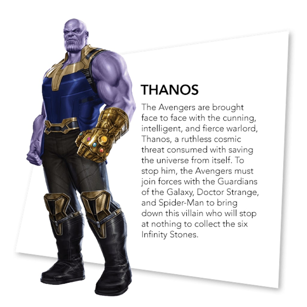 Summary: As the Avengers and their allies have continued to protect the world from threats too large for any one hero to handle, a new danger has emerged from the cosmic shadows: Thanos. A despot of intergalactic infamy, his goal is to collect all six Infinity Stones, artifacts of unimaginable power, and use them to inflict his twisted will on all of reality. Everything the Avengers have fought for has led up to this moment – the fate of Earth and existence itself has never been more uncertain.