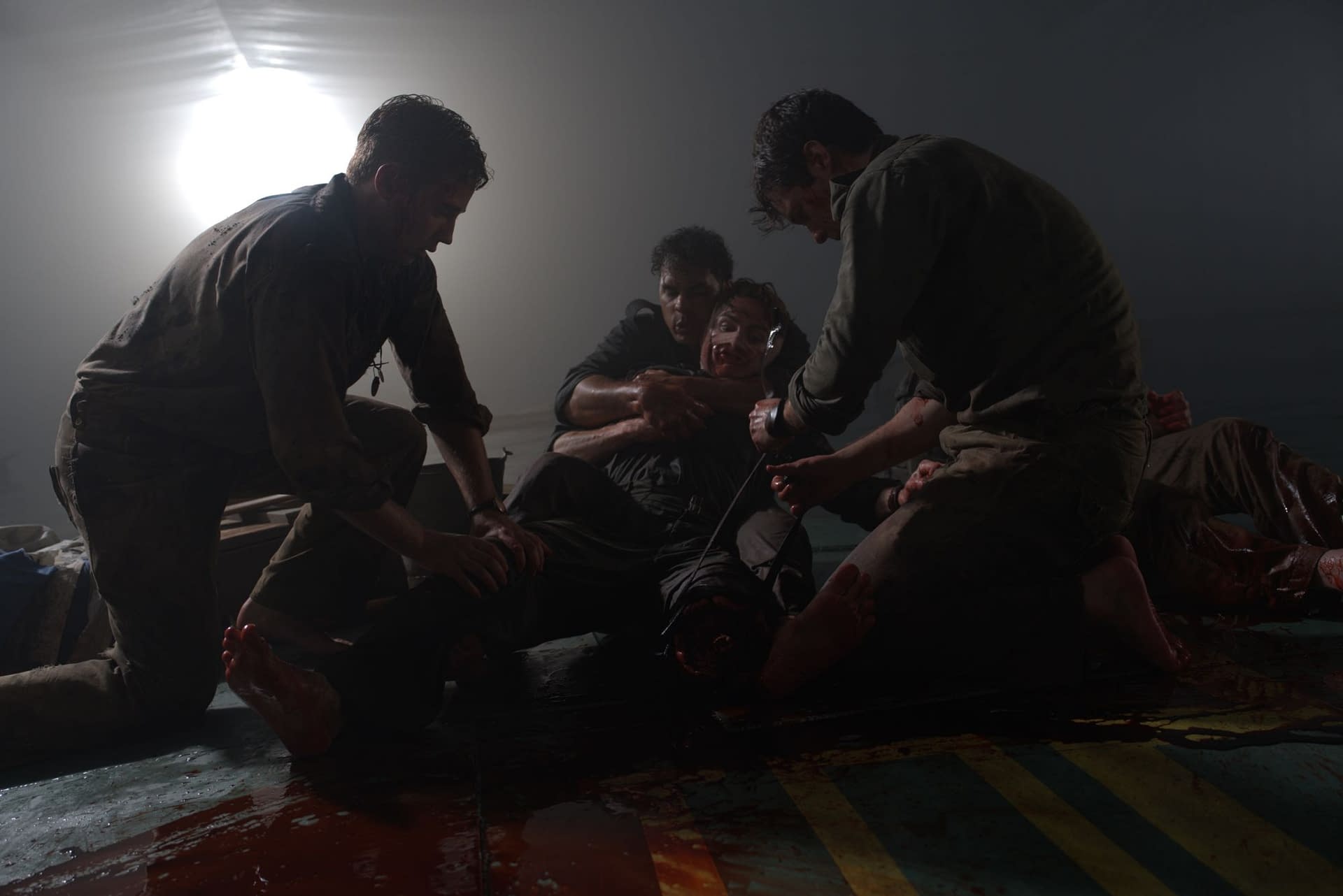 We also have this young guy, Will, a 17-year-old, who's scared out of his wits. He probably hasn't traveled that far from home, and now he's suddenly thrown into a meat grinder, where he's being tested, turning from a boy into a man. When you've got all that fertile character work to do and you play your cards right as a writer, you've got a lot of nice drama to deal with, as well as a shark, action, and machine guns. When you've got seven very different guys all trapped on a raft together, you need that character work to pull you through the emotion of the story.
