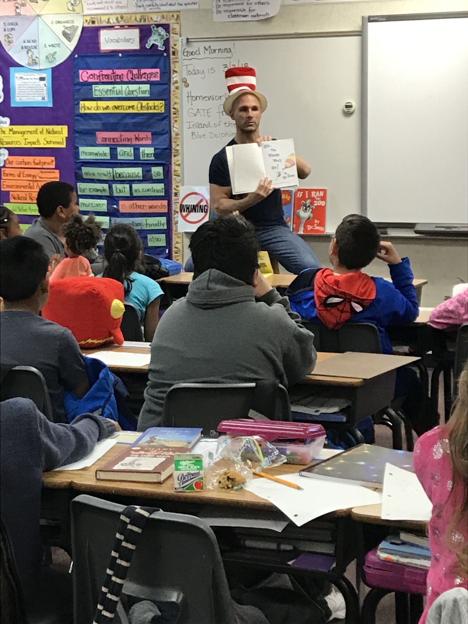 Being a professional wrestler isn't all about beating your opponent senseless with bodyslams, suplexes, and top-rope elbow drops. It's also about doing charitable work to benefit the community. Okay, it's mostly about beating your opponent senseless. But in an example of that other thing, Ring of Honor wrestlers Adam Page, Caprice Coleman, Christopher Daniels, Ian Riccaboni, Shane Taylor, and Silas Young took part in an event for the National Education Association's Read Across America last Friday. The annual program calls for a celebration of reading for kids every year during the week of March 2nd, the birthday of Dr. Seuss. Here's what the event is all about: