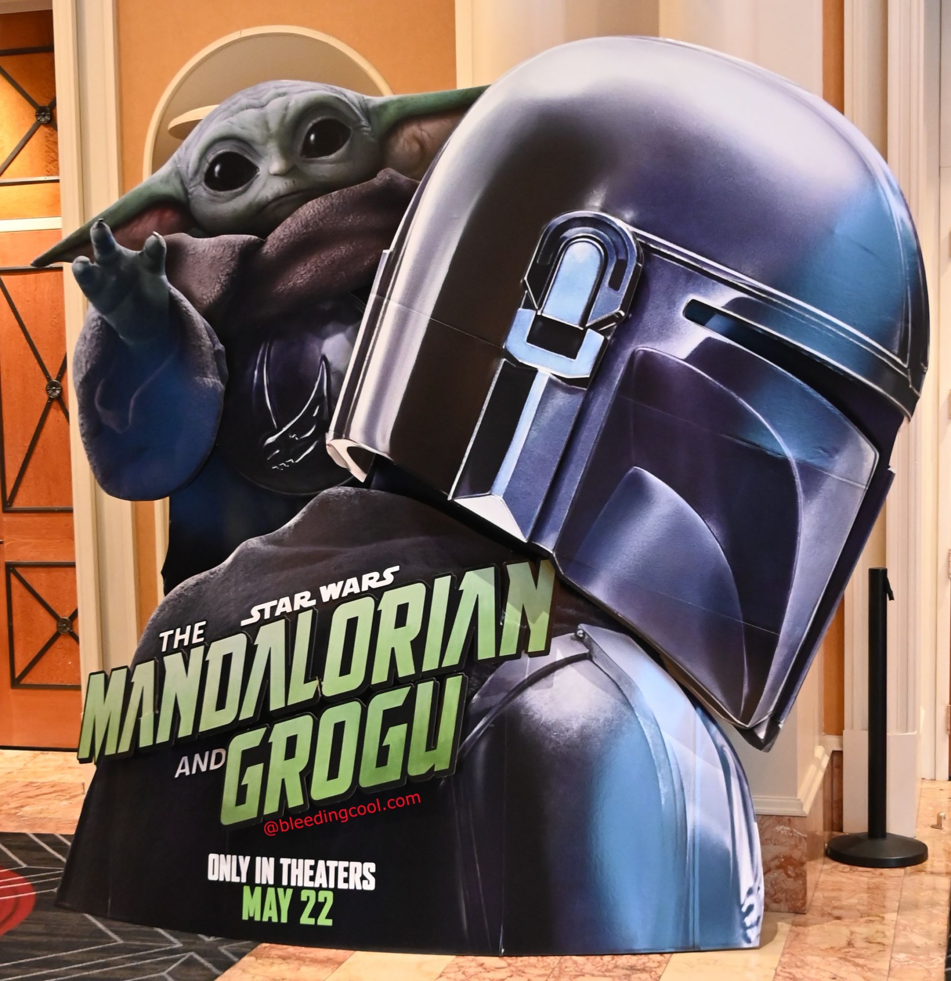 The Mandalorian and Grogu comes out next month, and Lucasfilm has brought a standee, a statue, and a lightbox display to the CinemaCon show floor.