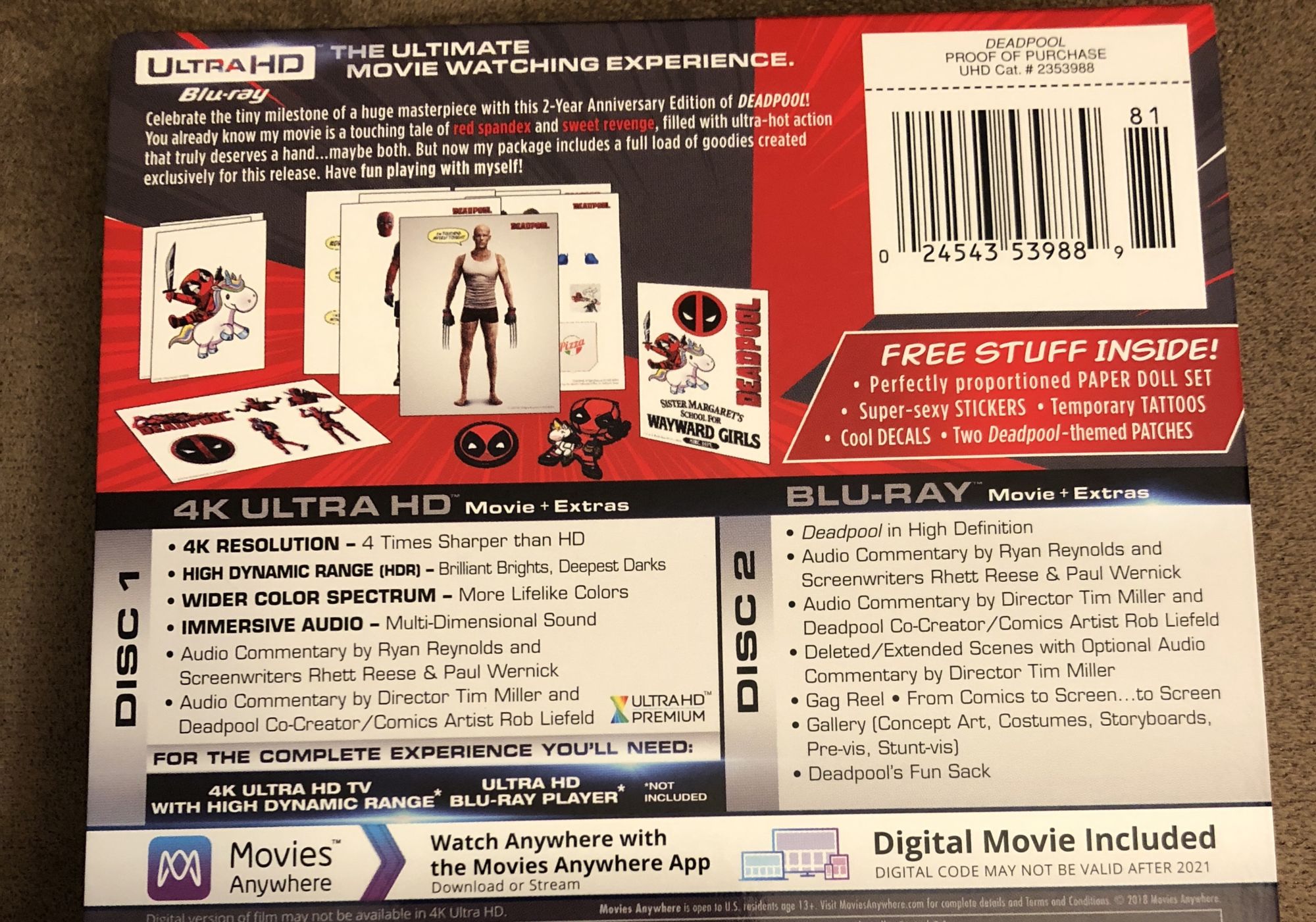 Deadpool is celebrating his two-year cinematic anniversary with a new film in theaters next week. On top of that, there is a new Best Buy exclusive Steelbook version of the first film available! This release of the film comes with two discs- one with the film on 4k Ultra HD. The other is the original blu ray disc from the first release with all of the original special features. Finally, a digital copy is included.