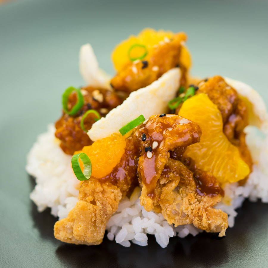 - Crispy Orange Chicken & Rice with Garlic Cracker
