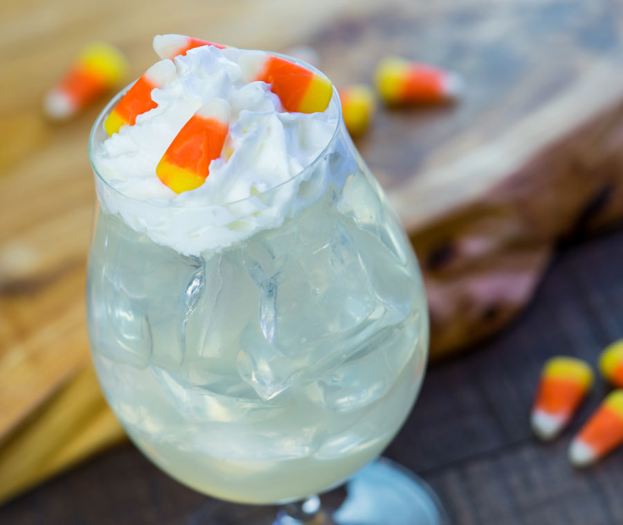 - Popcorn Lemonade with Whipped Cream and Candy Corn Garnish (non-alcoholic)