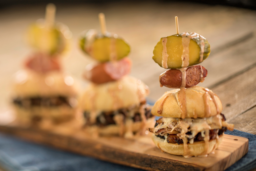 - Beef Brisket Burnt Ends and Smoked Pork Belly Slider with Garlic Sausage, Chorizo, Cheddar Fondue and House-made Pickle