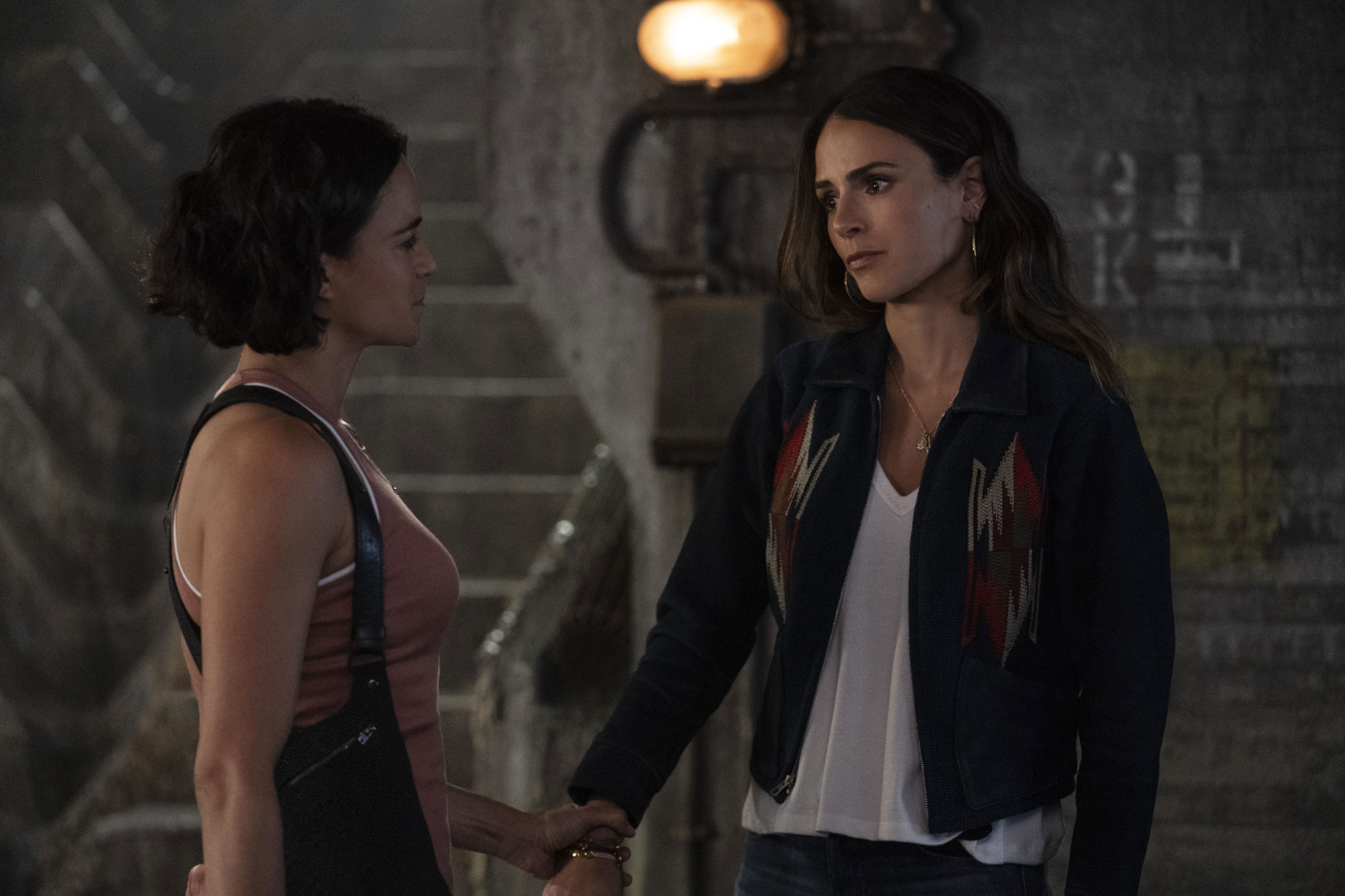 - (from left) Letty (Michelle Rodriguez) and Mia (Jordana Brewster) in F9, directed by Justin Lin. Credit: Universal Pictures