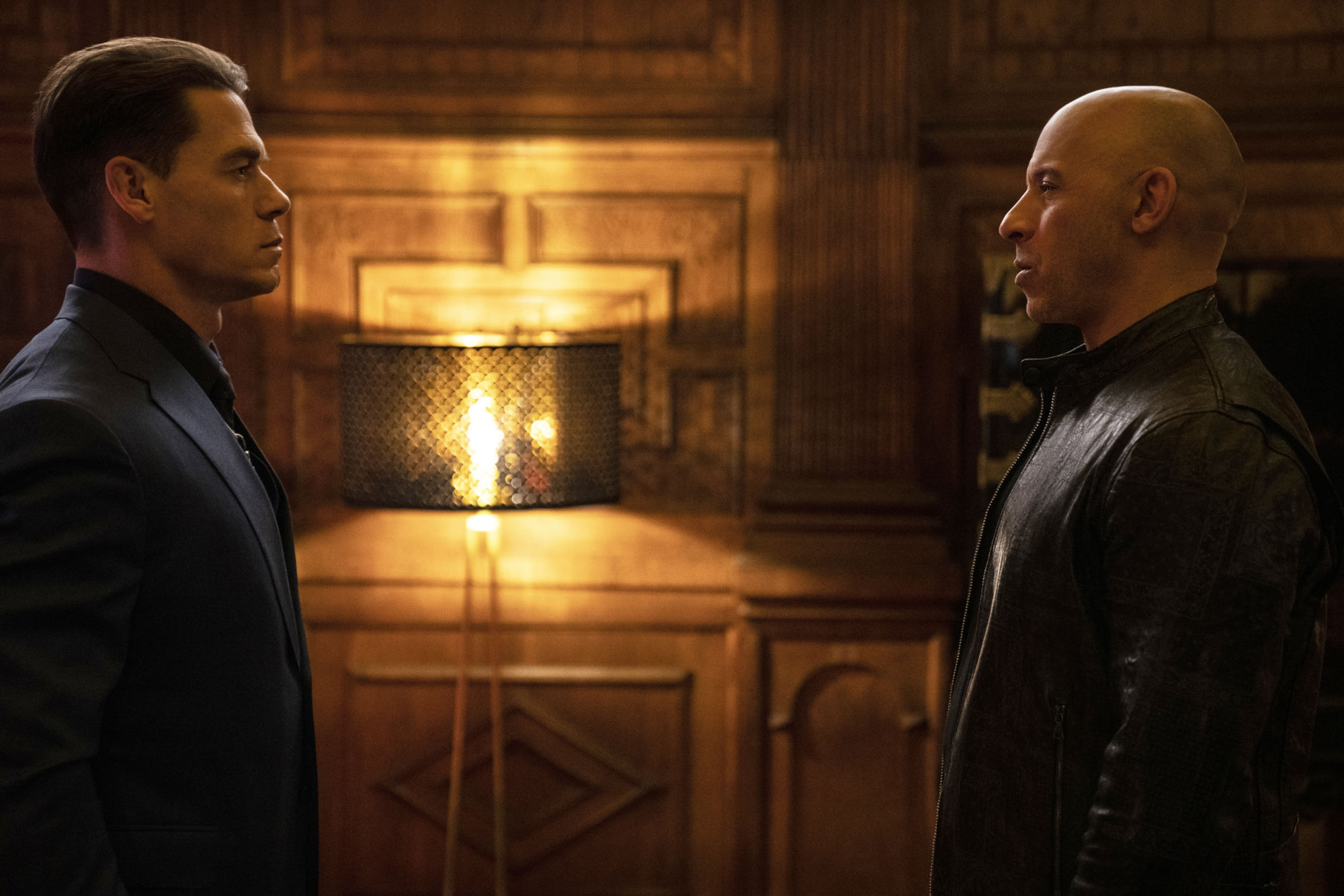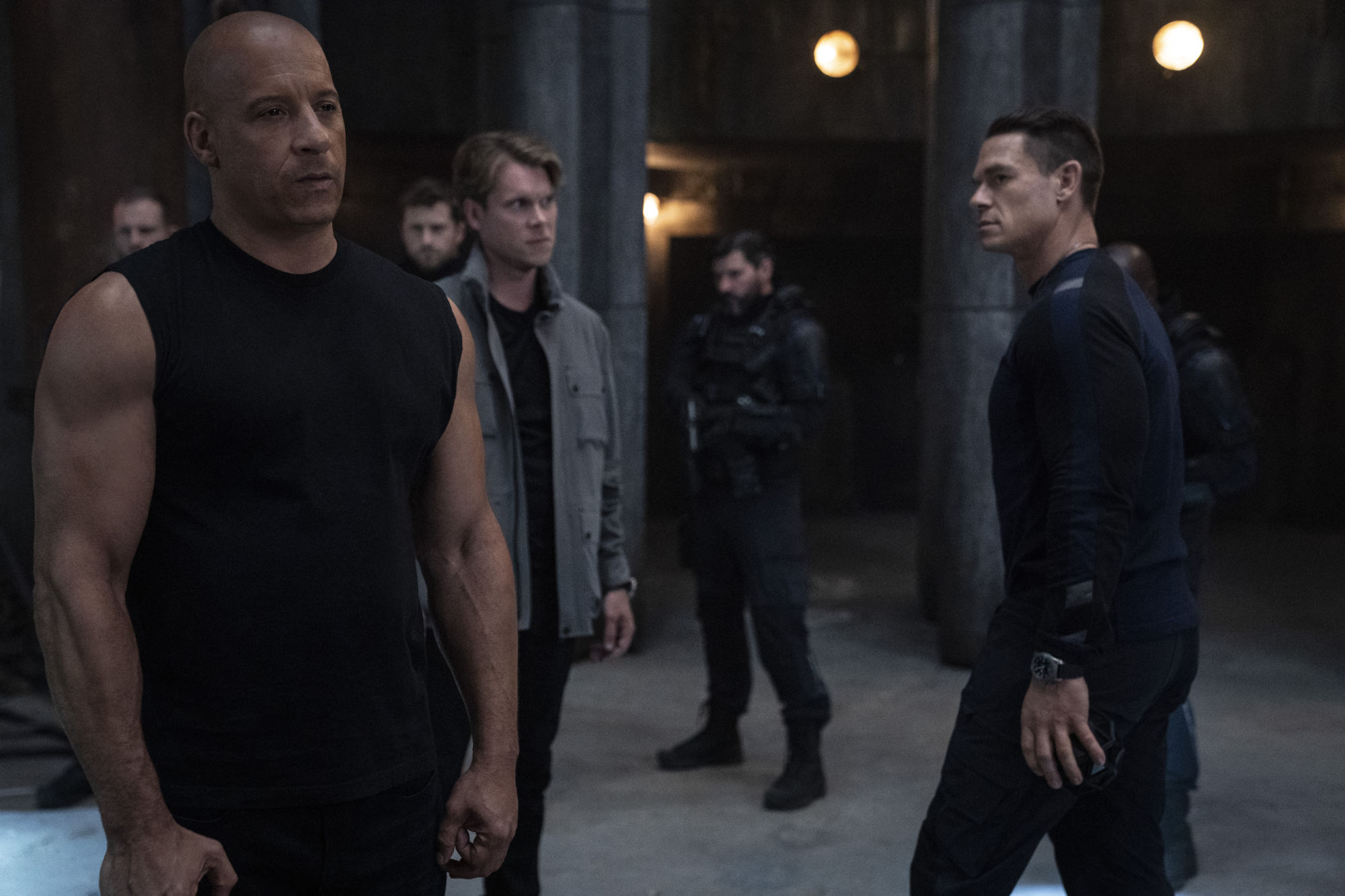 - (from left) Dom (Vin Diesel) and Jakob (John Cena) in F9, directed by Justin Lin. Credit: Universal Pictures