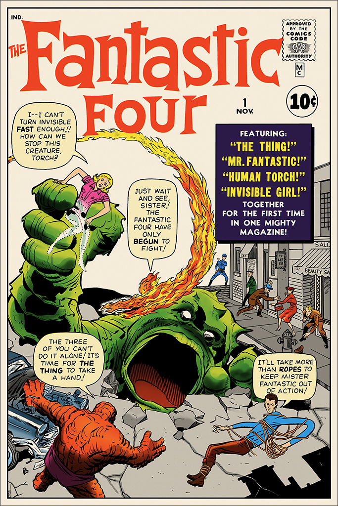 "The history of Marvel Comics technically begins with the introduction of Namor the Sub-Mariner in 1939 and Captain America the following year. But the rise of the company from a scrappy publisher of romance, war, and sci-fi comics to one of the biggest entertainment brands ever really began in 1961 with Stan Lee and Jack Kirby's FANTASTIC FOUR, and the revitalization of the entire comics industry that followed. This week we're honored to bring you two new posters featuring the Fantastic Four – a beautiful, screen-printed reproduction of Fantastic Four #1 by legendary artist, Jack "King" Kirby, and the variant cover for last year's FANTASTIC FOUR: GRAND DESIGN #1 by one of the best cartoonists working today, Ed Piskor.