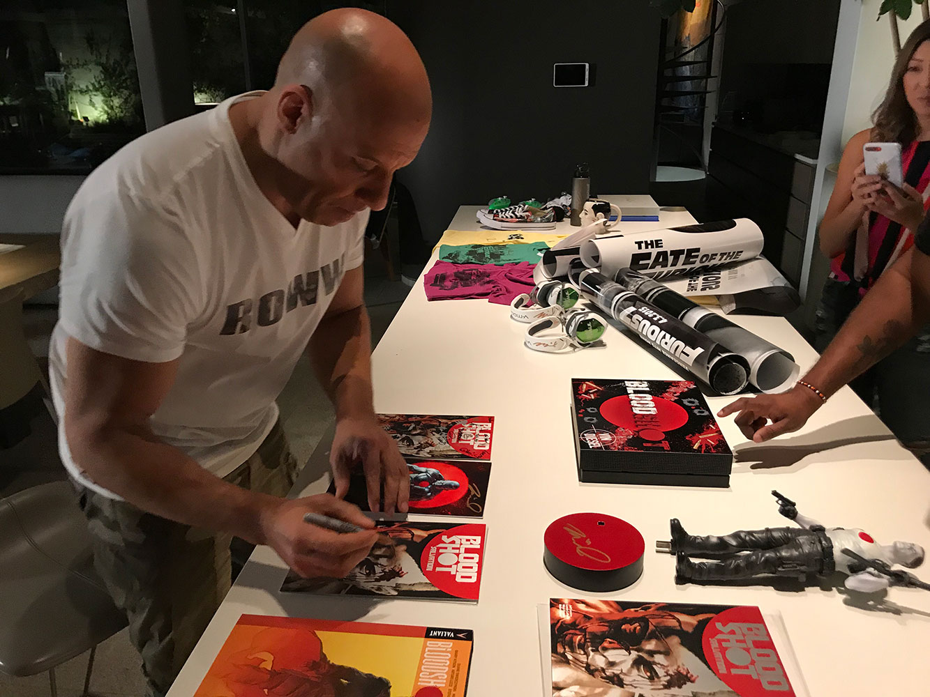 For this year's Game4Paul livestreaming event, co-sponsored by Xbox, Diesel will not only be appearing remotely to discuss how Bloodshot is shaping up on the big screen, but has also contributed a smorgasbord of signed comics and merchandise that fans can purchase online in exchange for a donation benefitting Reach Out WorldWide missions around the world. (The charity currently has teams deployed in Indonesia and North Carolina, responding to the recent natural disasters.)